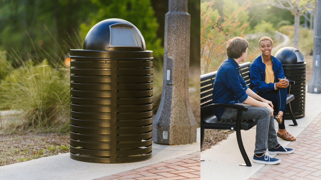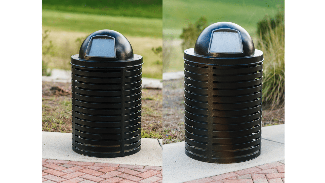 Our Horizontal Strap outside trash receptacle is truly the perfect trash receptacle for any location. The traditional, yet modern, design blends into any landscape. The Horizontal Strap Trash Receptacle is available in a 32-gallon option and is features our tough textured polyethylene coating. Surface and in-ground mounting options are available for facilities that need to secure their receptacles.