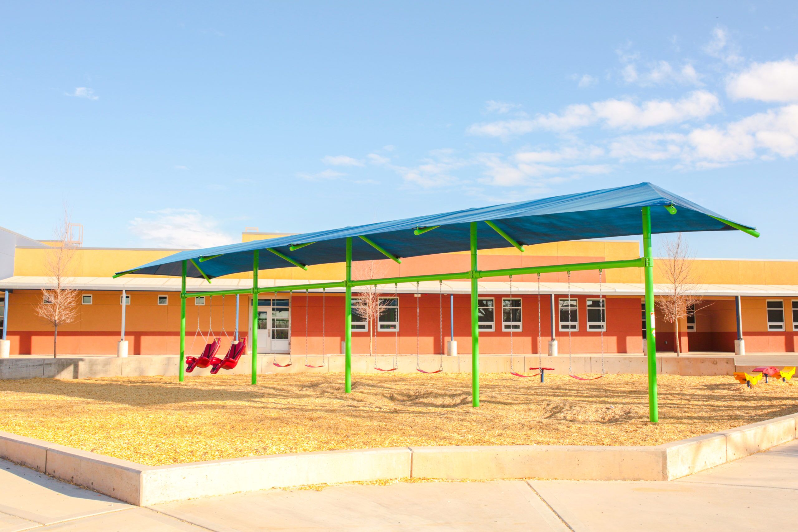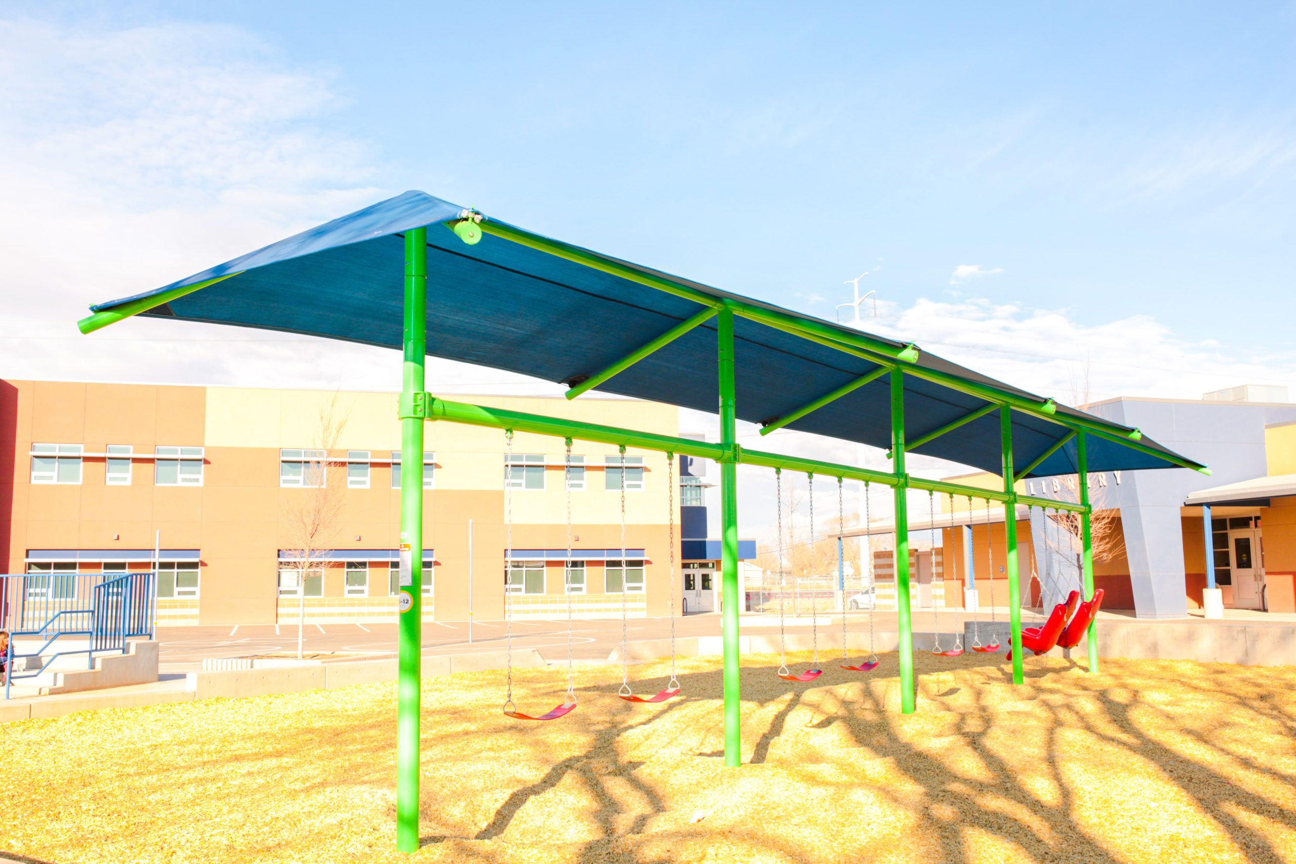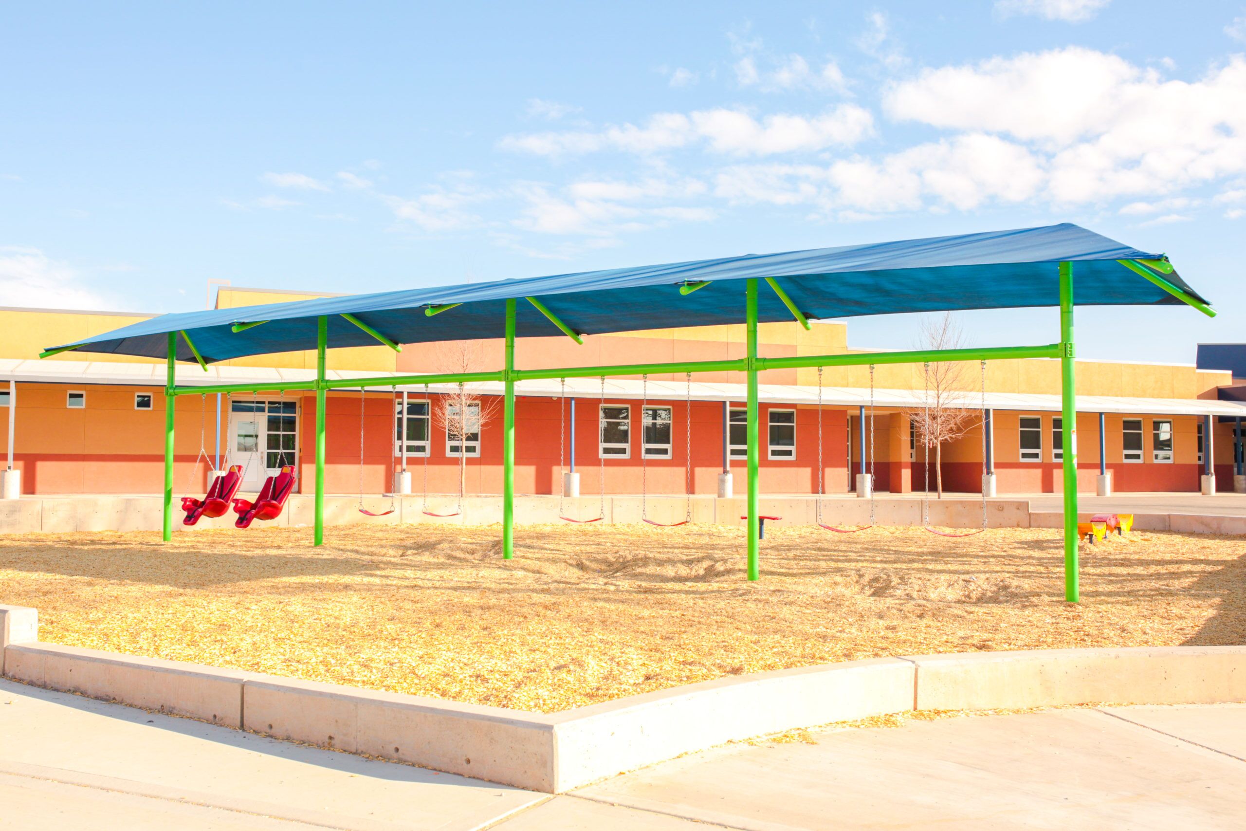 Consider adding a shaded swing set to your play area in order to increase participation and overall patron experience. All swing seats and chains sold separately. SWING BAYS Shades are available in one, two, three, or four bays.