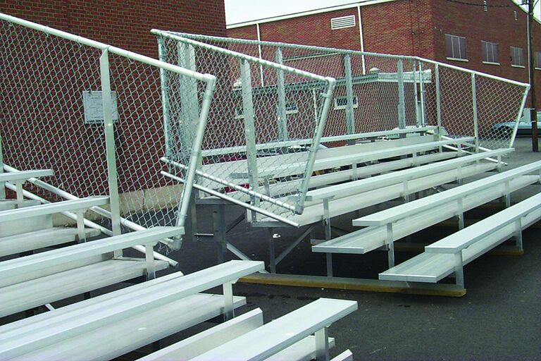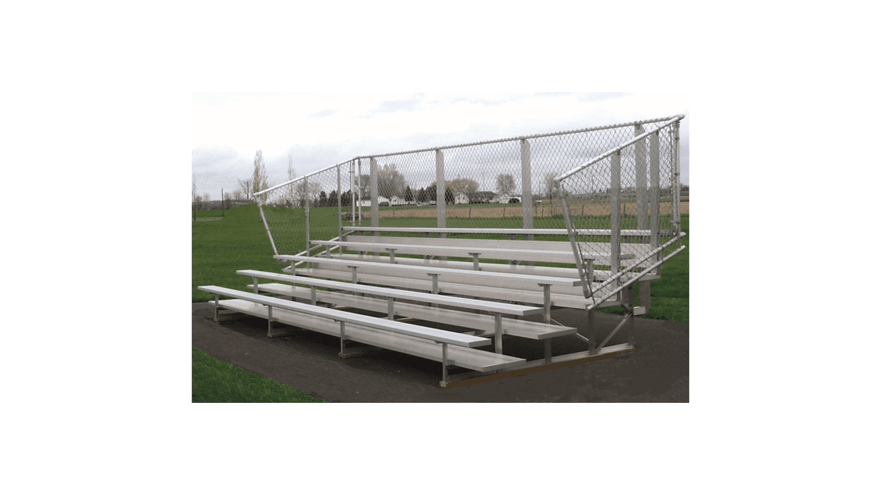 Our “Preferred” non-elevated aluminum bleachers are an upgrade from our “Standard” model that include anodized seat plank, double (2) 2″x10” mill finish foot planks on all rows and riser plank on rows 4 and above. Guardrails are included on all bleacher systems with 5 rows of seating or more. Our 3 row bleachers top seat height is less than 30” so guardrail and riser are not required to meet building and safety codes.