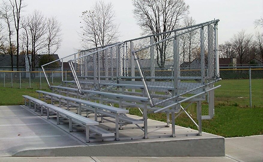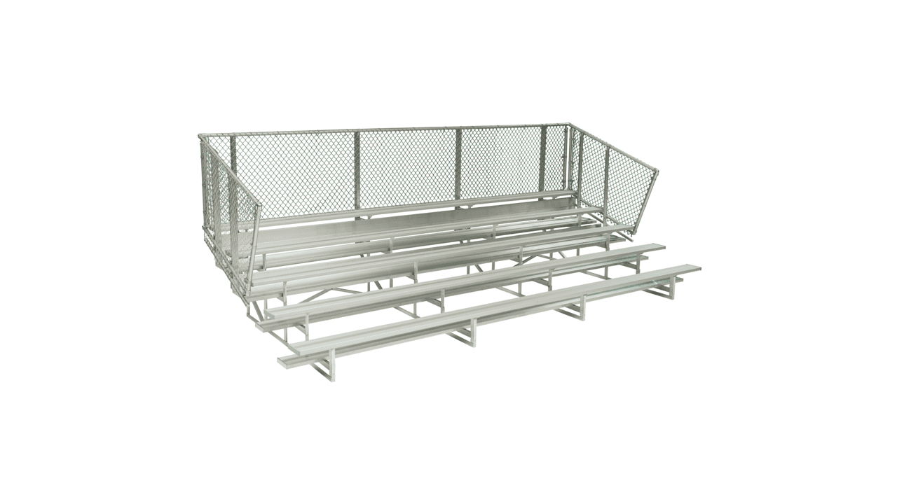 Our “Standard” non-elevated aluminum bleachers provide an affordable system for all your basic bleacher needs. All “Standard” bleachers include 2″x10” anodized seat plank, single (1) 2″x10” mill finish foot planks on rows 2-3 and double (2) 2″x10” foot planks and riser plank on rows 4 and above. Guardrails are included on all systems with 5 rows of seating or more. Our 3 row bleachers top seat height is under 30” so guardrail and riser are not required to meet building and safety codes.