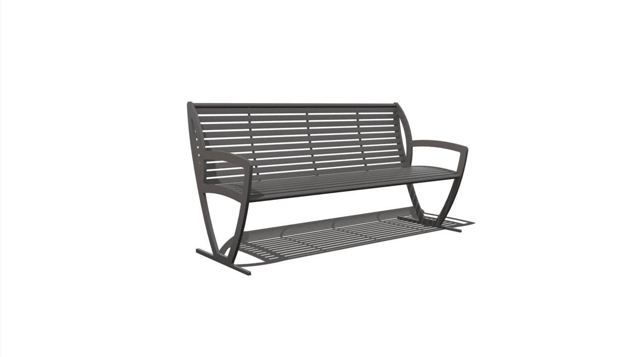 The Zion Bench with Back features an all-steel, horizontal slatted design suitable for any outdoor area. With its modern design and 6′ length, place this bench within courtyards, outdoor shopping malls, or city sidewalks for an upscale feel. The Zion Bench collection is made from tough steel that is coated in a super durable powder coat in your choice of color. This bench is available without armrests, with side armrests, and with both side and center armrests. This bench is also available in a backless version. Specifications: 6′ length Powder coated finish Legs are made from 3/4″ laser cut steel plate Fully welded Combined portable/surface mount frame