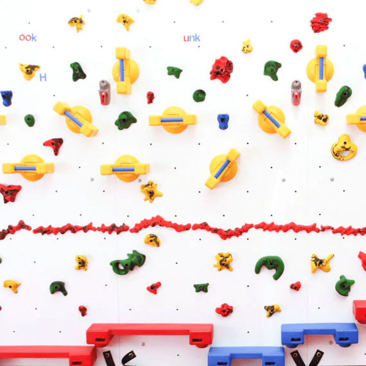 The Adaptive Climbing Wall, with its companion activity guide, helps instructors effectively include youth with special needs in their climbing program. The smooth, dry-erase and magnet-accepting surface can be written on and accepts magnets to provide learning opportunities for children with cognitive or communicative disabilities. The Adaptive Holds include grab-bar style hand holds and ledge-style foot holds to provide stability and extra support for children with physical disabilities. The color-coded Groperz™ Hand Holds offer a variety of additional options for climbers to use as they travel across the Traverse Wall®. Green hand holds are the largest and easiest to grip. The yellow holds come in a variety of sizes and offer a light challenge. The red holds are medium sized and provide the most challenge. Climbers can choose to use any color hand hold, or try the extra challenge of climbing using only hand holds of the same color. Our signature Red-Relief Line® is a safety feature that reminds climbers to stay within a distance of three feet from the floor and is a helpful tool for the climbing wall supervisor. Make rocking climbing more accessible with the Adaptive Climbing Wall!