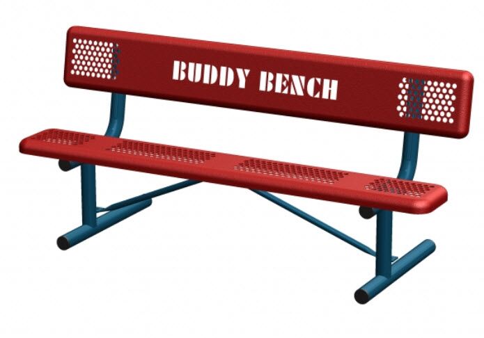 Sometimes children need an easier way to engage with each other. Our 6-foot Standard Perforated Buddy Bench could be your ideal solution. A buddy bench is a safe and comfortable seating choice that allows one child to invite another child to sit and chat. This zone becomes a safe haven for those kids who are very introverted and could use added encouragement to make new friends. This bench is made of tough steel and coated with textured polyethylene in a variety of color options. Our standard design features “Buddy Bench” lettering. This design can be applied to most of our benches in the Essentials Collection.