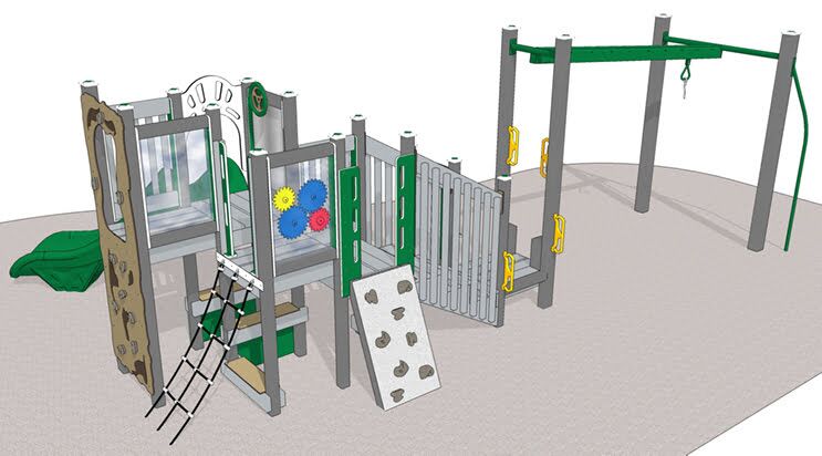 Specially designed for adventurous 5- to 12-year-olds. Our BearBack playset entertains with lots of physical challenges. The Super Glider and climbers provide upper body strengthening exercises. Rock and rope climbers develop balance, agility, and strength.