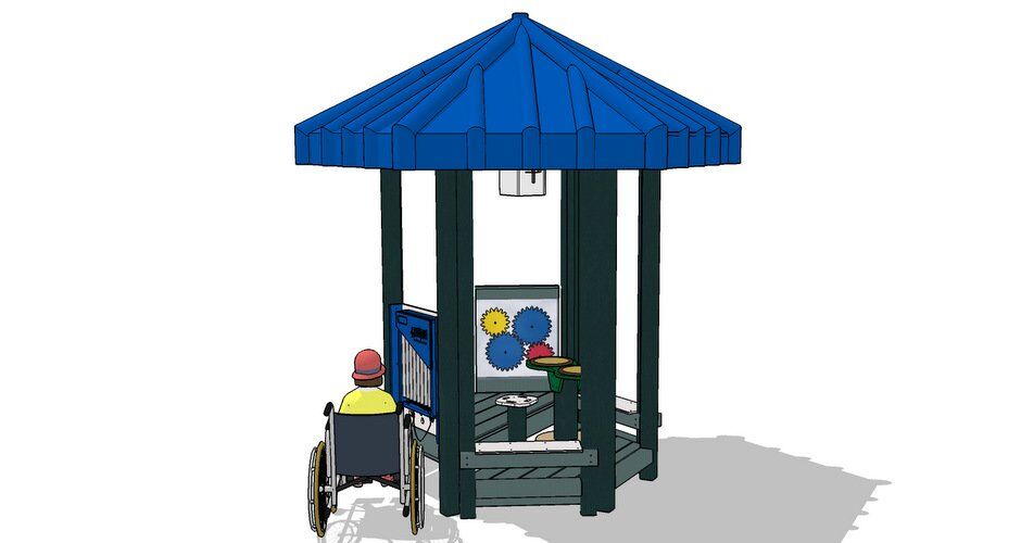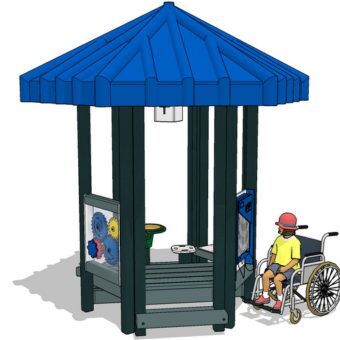 Bring the arts to your playground with this innovative playhouse! Bongo drums and chimes provide the music, and our interactive gear panel introduces science.