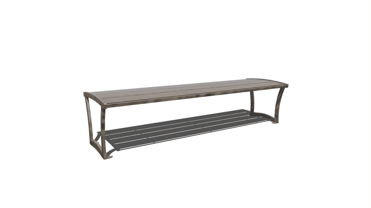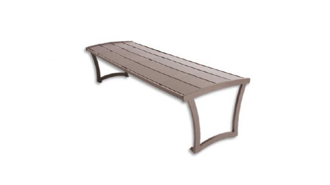 With an attractive horizontal slat pattern and a backless design, the Bryce Steel Bench without Back is suitable for any location where you may need a bench approachable from both sides — from welcoming areas to employee break areas. This bench is constructed from steel seat and planking and steel plate legs, all with a powder coated finish in your choice of vivid or natural colors. Choose from a 4′, 6′, or 8′ length option. This bench is also available with or without side armrests. Our Bryce Bench collection also includes a bench with back and an Ipe wood planking version. Specifications Features ź” x 5″ powder coated steel planking Features ž” powder coated steel plate legs reinforced with ź” thick support bars Combined portable/surface mount frame with tabs Available with or without armrests 4′, 6′, or 8′ length options