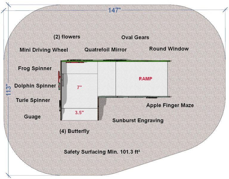 Our new dolphin gray flooring is a rubberized and slightly padded outdoor high-density polyethylene. All Nature of Early Play sets now have this state-of-the-art material for decking and flooring.