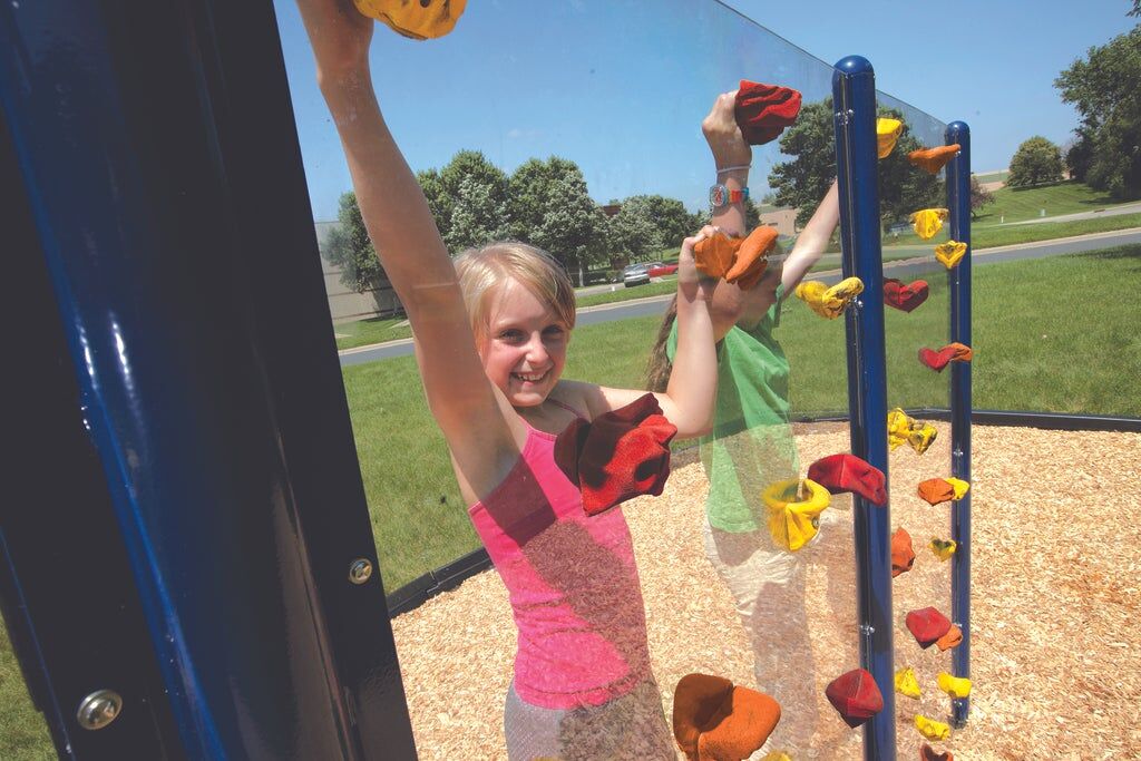 Waterproof, durable and easy to clean, each clear climbing wall panel includes Groperz® Hand Holds and zinc-plated bolts. Panels are mounted to blue powder-coated steel posts. Sold as 12′ long, or make your playground rock climbing wall longer with additional panel purchases. IPEMA CERTIFIED.