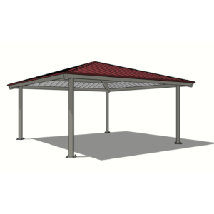 Crossing Shelters can be arranged in a variety of ways to transform a basic gable or hip shelter into a dynamic centerpiece for you site. Choose from the standards shown here or mix and match gable and hip ends. Other possibilities include adding Sunburst or Architectural End Gables.