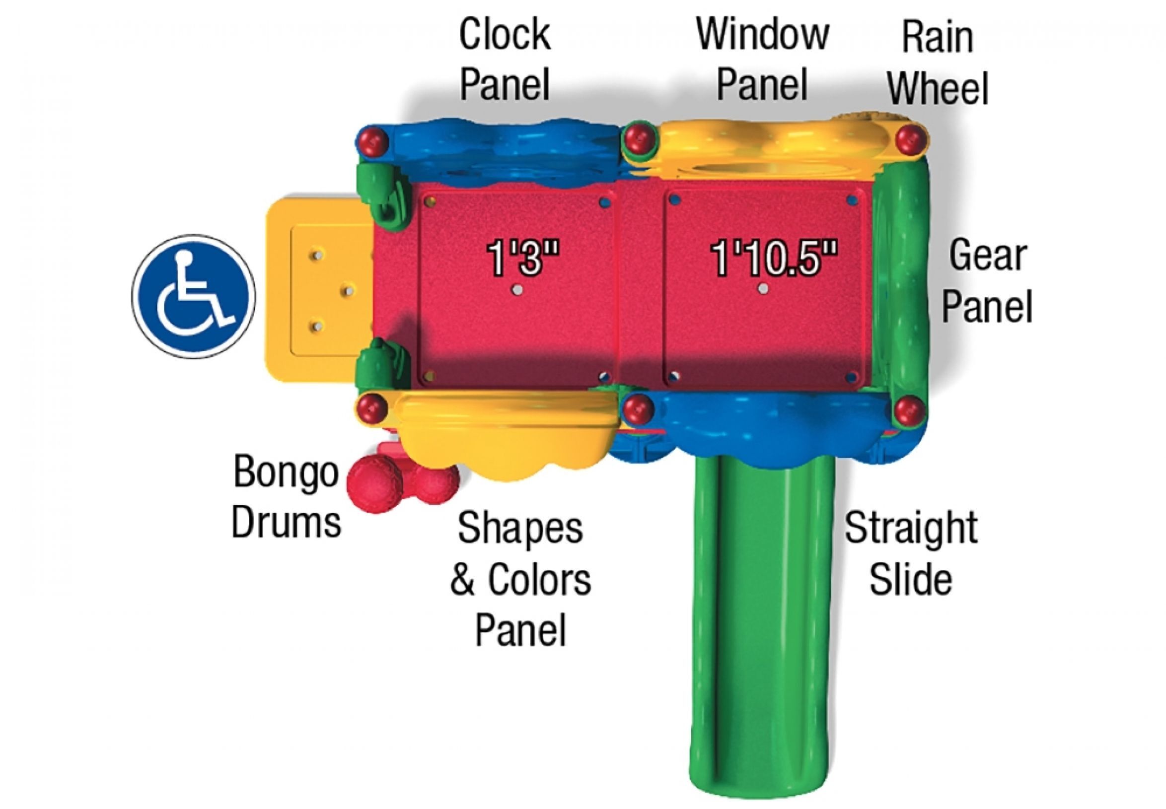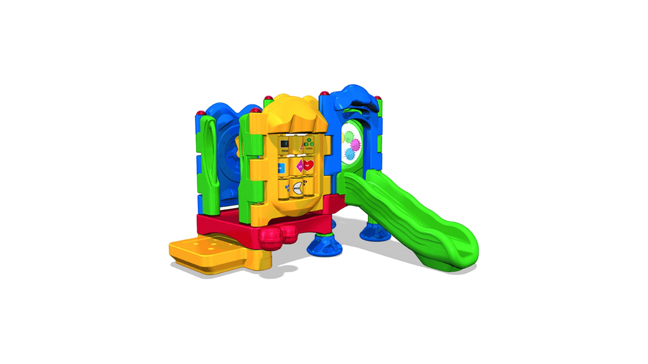 Our top-selling Discovery Center unit offers maximum play value with a compact design to easily fit in a play space! This two-deck structure features a multitude of activities for the youngest 6-month old to the busiest 23-month old, while offering nature inspired detail integrated throughout the structure. Children will stay active with their friends as they engage with the interactive components. The Window Panel allows children to peek at their friends below while the Rain Wheel and Gear Panel offer learning opportunities about cause and effect as they realize the noise they can make with a simple spin. The entryway of the structure also features handrails so children can enjoy an easy transition to the first deck. This structure is also available with a roof, which provides shade and comfort for children during play!