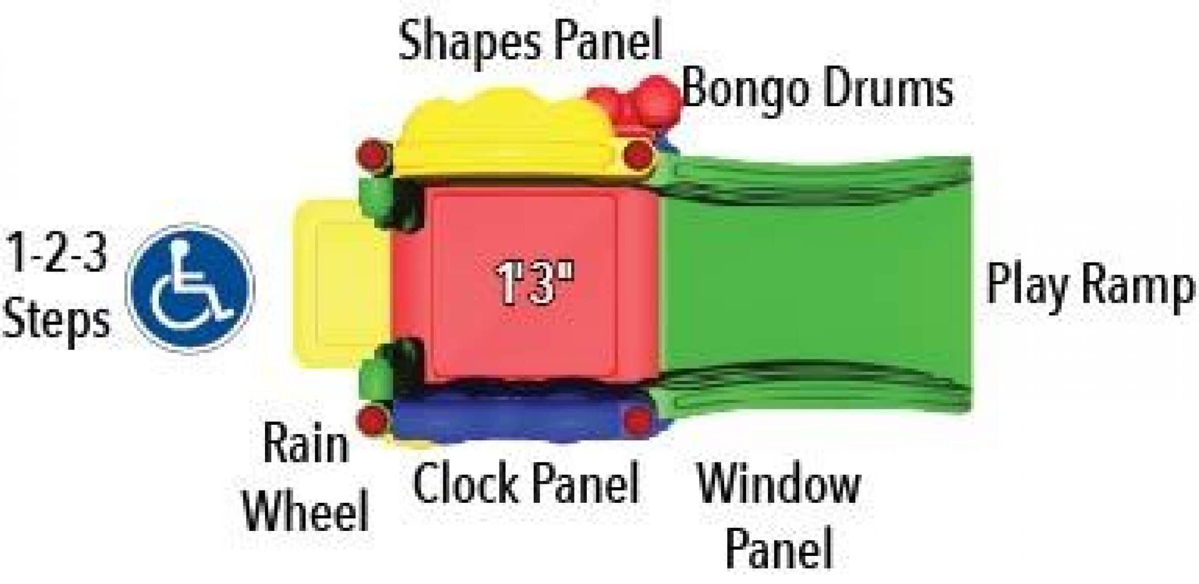 The Discovery Center Super Sprout is an ideal play solution for developing 6-23-month children! This one deck structure features a multi-functional play ramp that is designed to help infants and toddlers meet developmental milestones. The sides of the play ramp features animals, shapes, ABC’s and numbers to promote language development and counting skills. The gentle curved design encourages the progression from crawling to walking, while the molded edge provides natural handholds for children learning to pull-up, stand, and walk. This structure features a roof which provides shade and comfort for children during play!