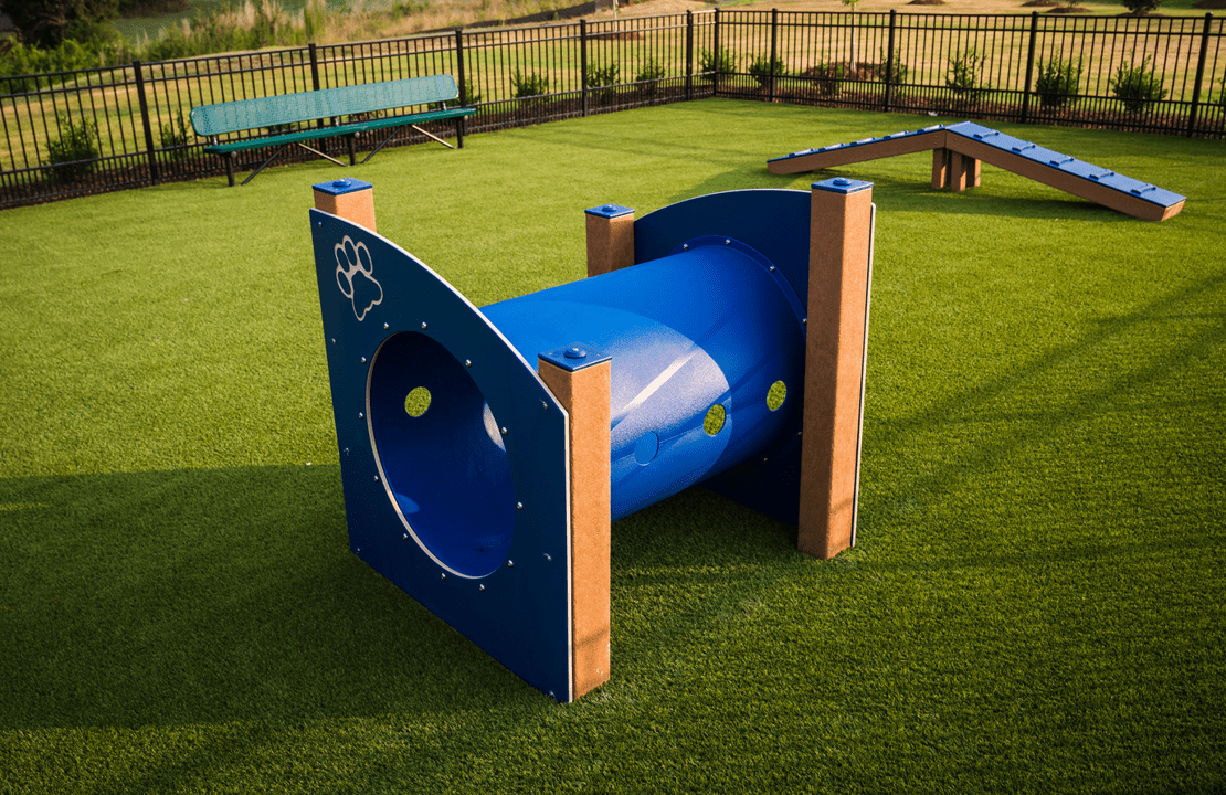 The Dog Log is great for dog parks as it’s suitable for dogs of all confidence levels and sizes. Dogs can challenge themselves to navigate through the tunnel or sit inside to get some relief from the sun. The posts are made from 100% recycled HDPE, which are easy to clean and durable.