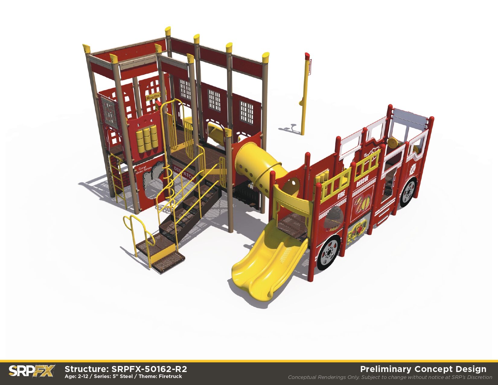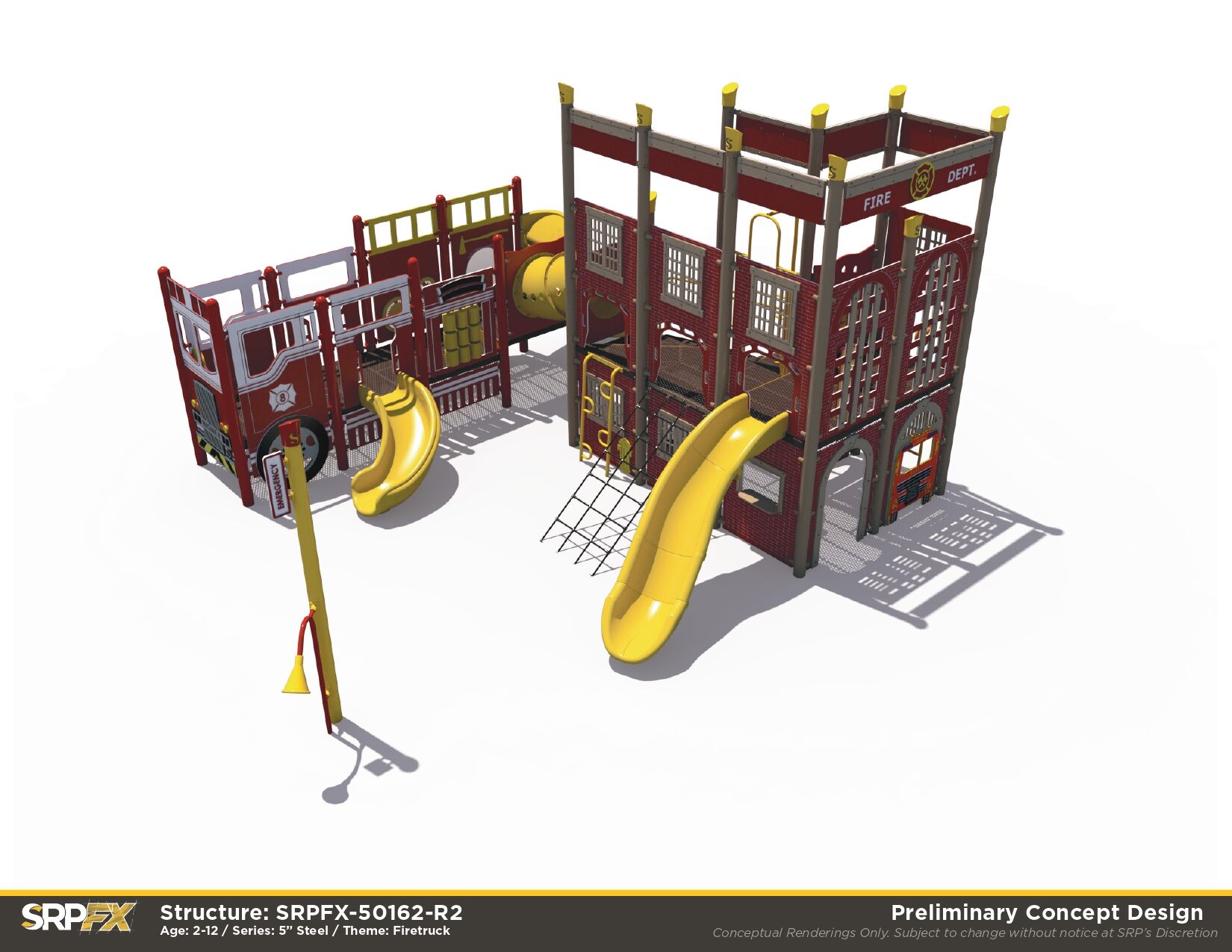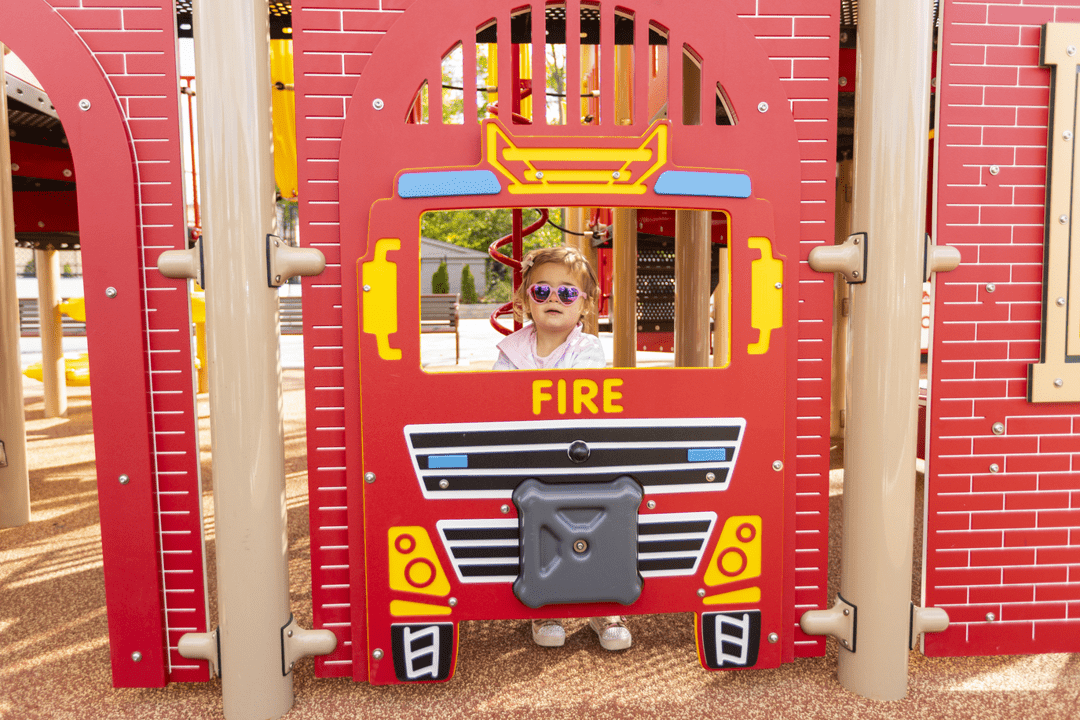 Stop, drop, and roll on over to the Fire Station Playground. Children will love exploring the fun and challenging climbers, slides, and panels on this play structure. It’s perfect for parks, schools, or other outdoor play space.