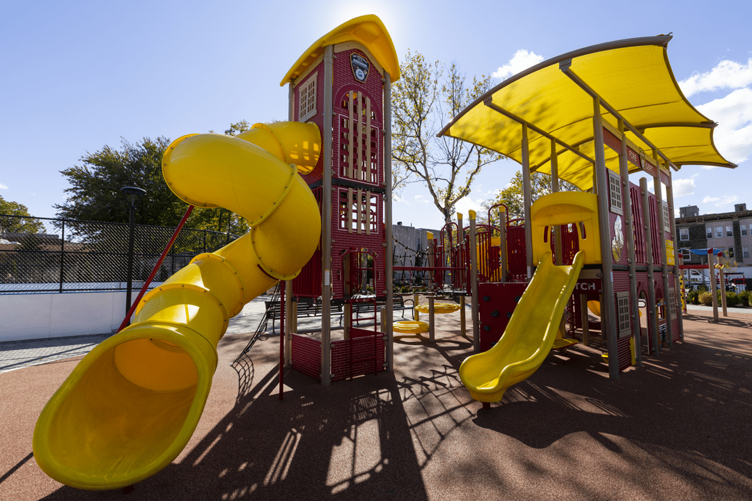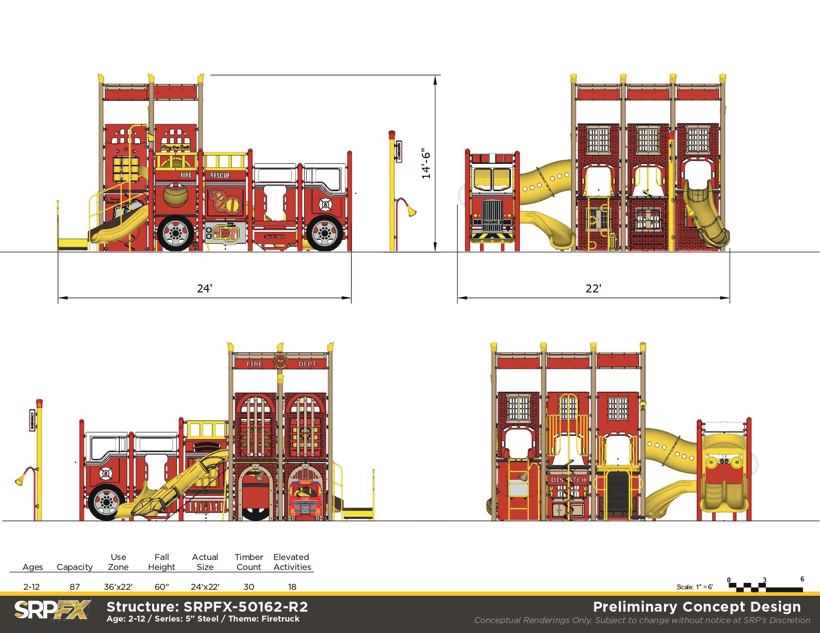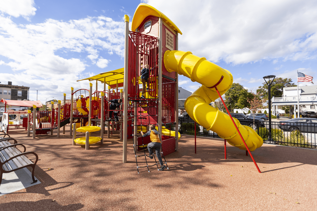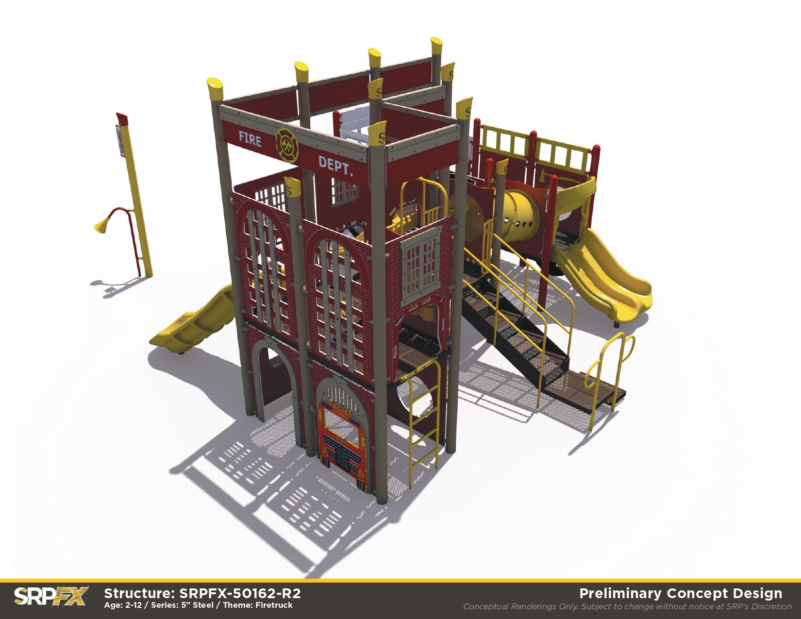 Stop, drop, and roll on over to the Fire Station Playground. Children will love exploring the fun and challenging climbers, slides, and panels on this play structure. It’s perfect for parks, schools, or other outdoor play space.