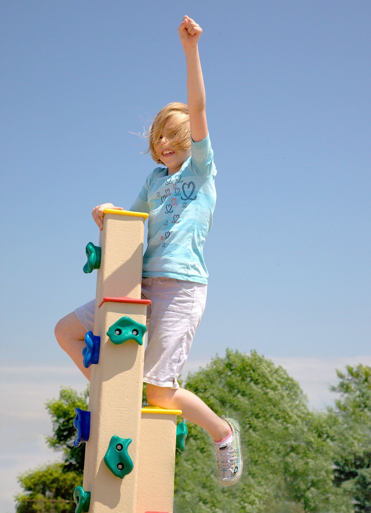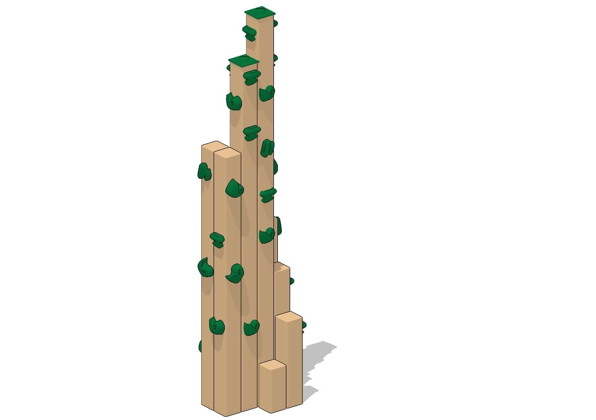 Challenge your future mountaineers with this towering playground climber! Nine 6″ x 6″ posts of varying heights with rock holds. Kids build muscle and balance as they scale this nearly indestructible feature.