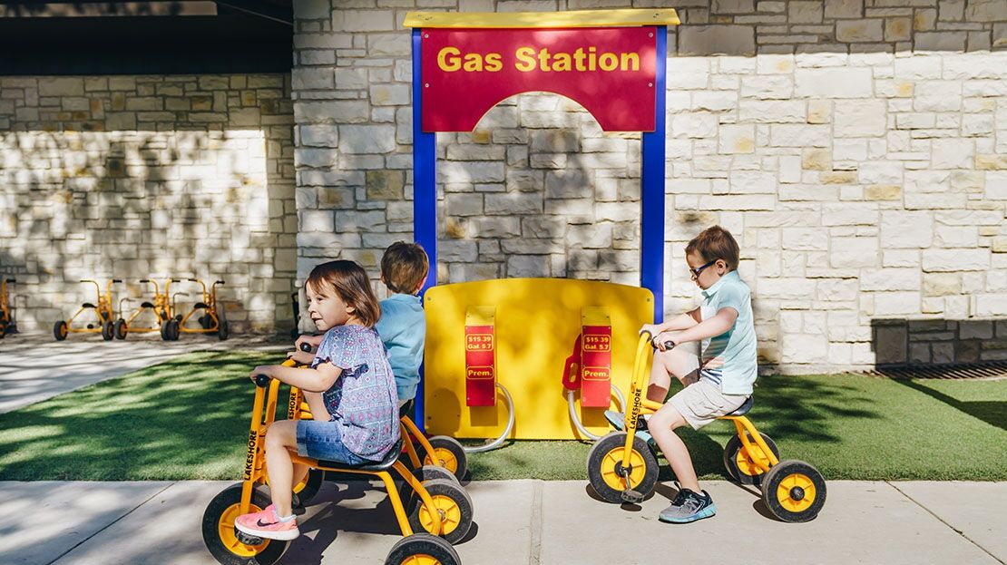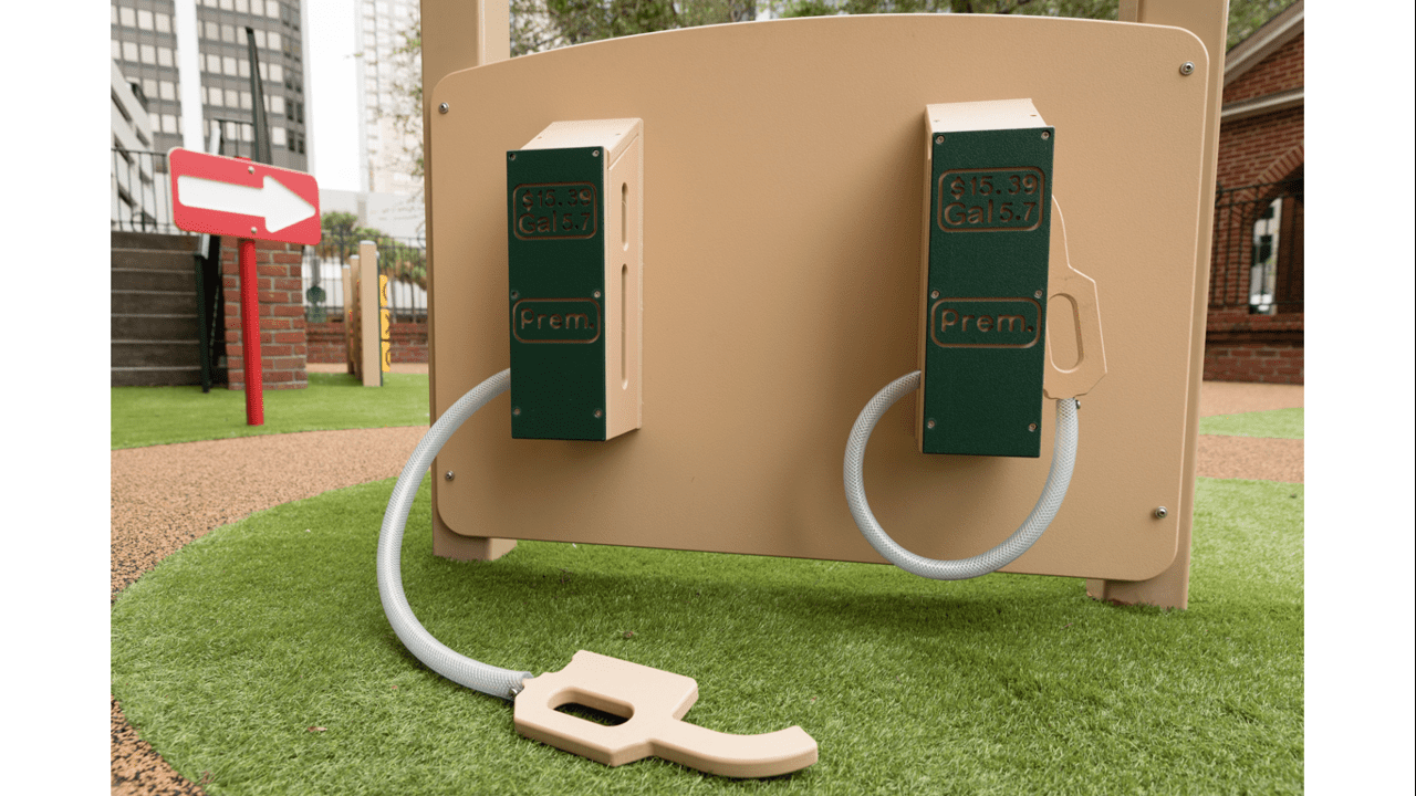 The Gas Station Stand goes well in a trike environment where children are actively riding trikes. Kids can “fill up” when they are running low on gas!