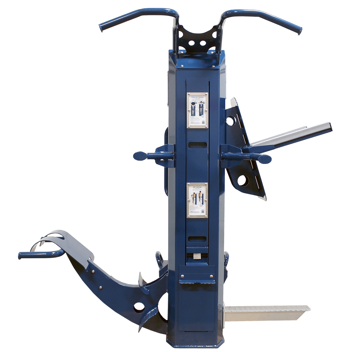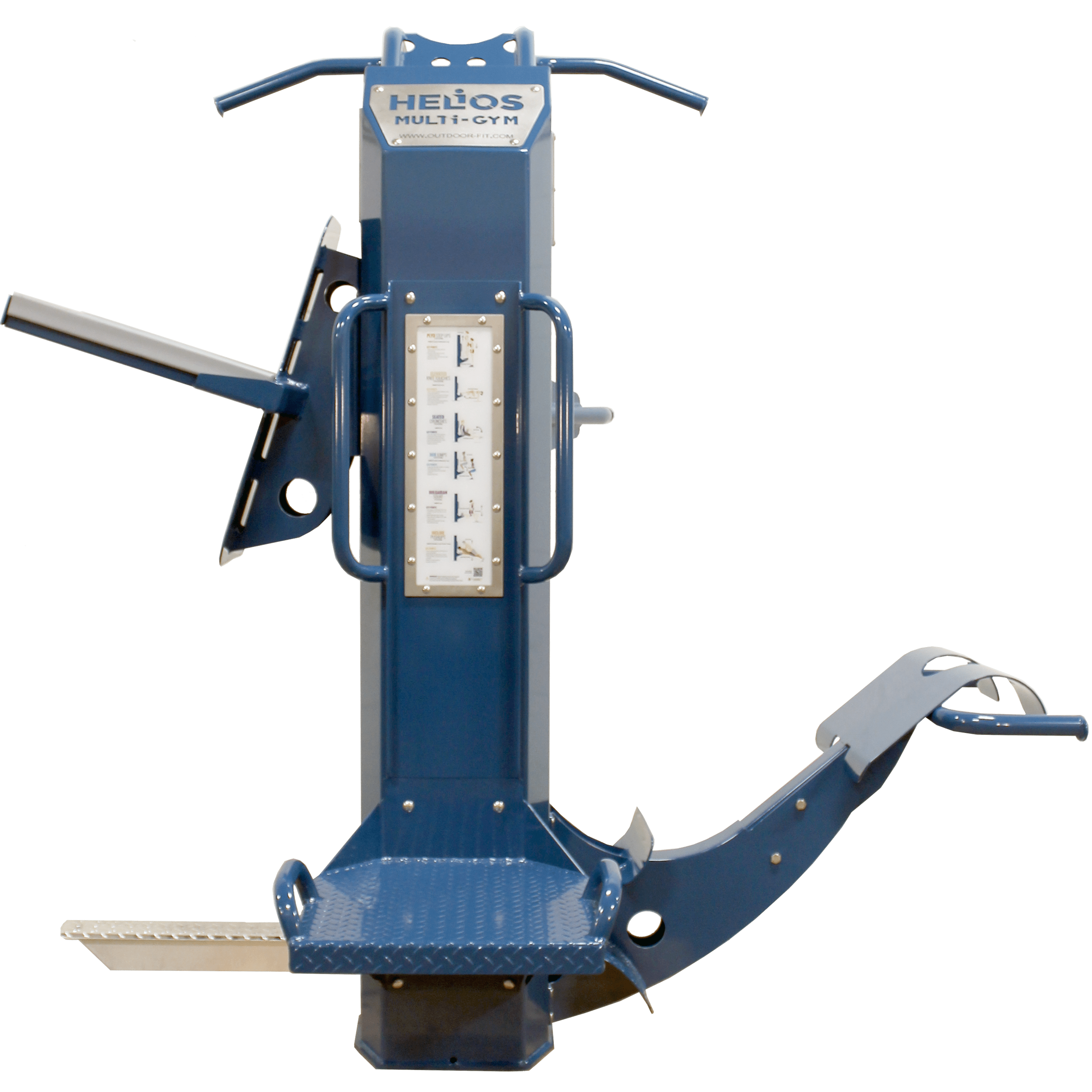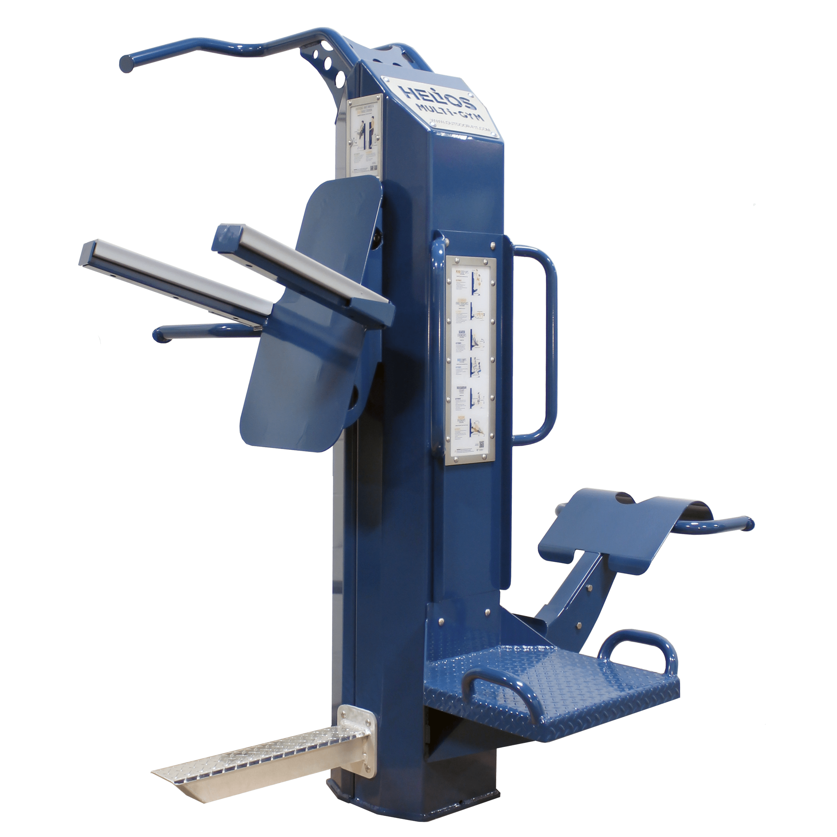 The HELIOS-NA is built with absolutely no moving parts. It offers the same exercises and features of our original HELIOS multigym, without the assist mechanism. In its place is a fixed “assist lip” to still provide assistance for chin ups and dips.