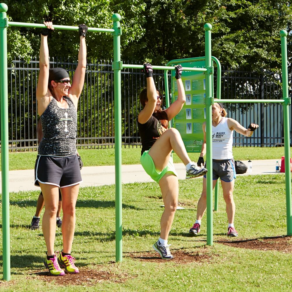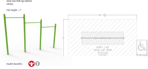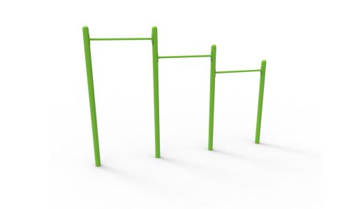 The Joint Use Pull-Up Bar is outdoor exercise equipment that helps people of all abilities improve their upper body strength. This piece features three bars, all at different heights, to provide all users a chance to participate. Our outdoor pull-up bar is designed for ages 13 and up.