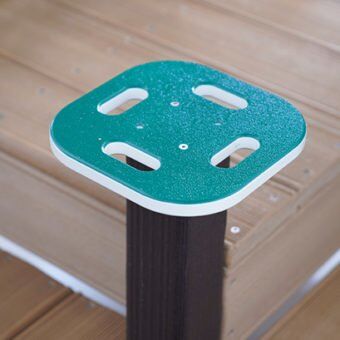 Youngsters can scramble up the gently sloped Rocky Ramp with its wave-shaped side panels. Once on the deck, they can learn about geometric shapes as they peek through the cutouts on the engraved panel.
