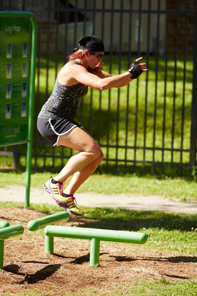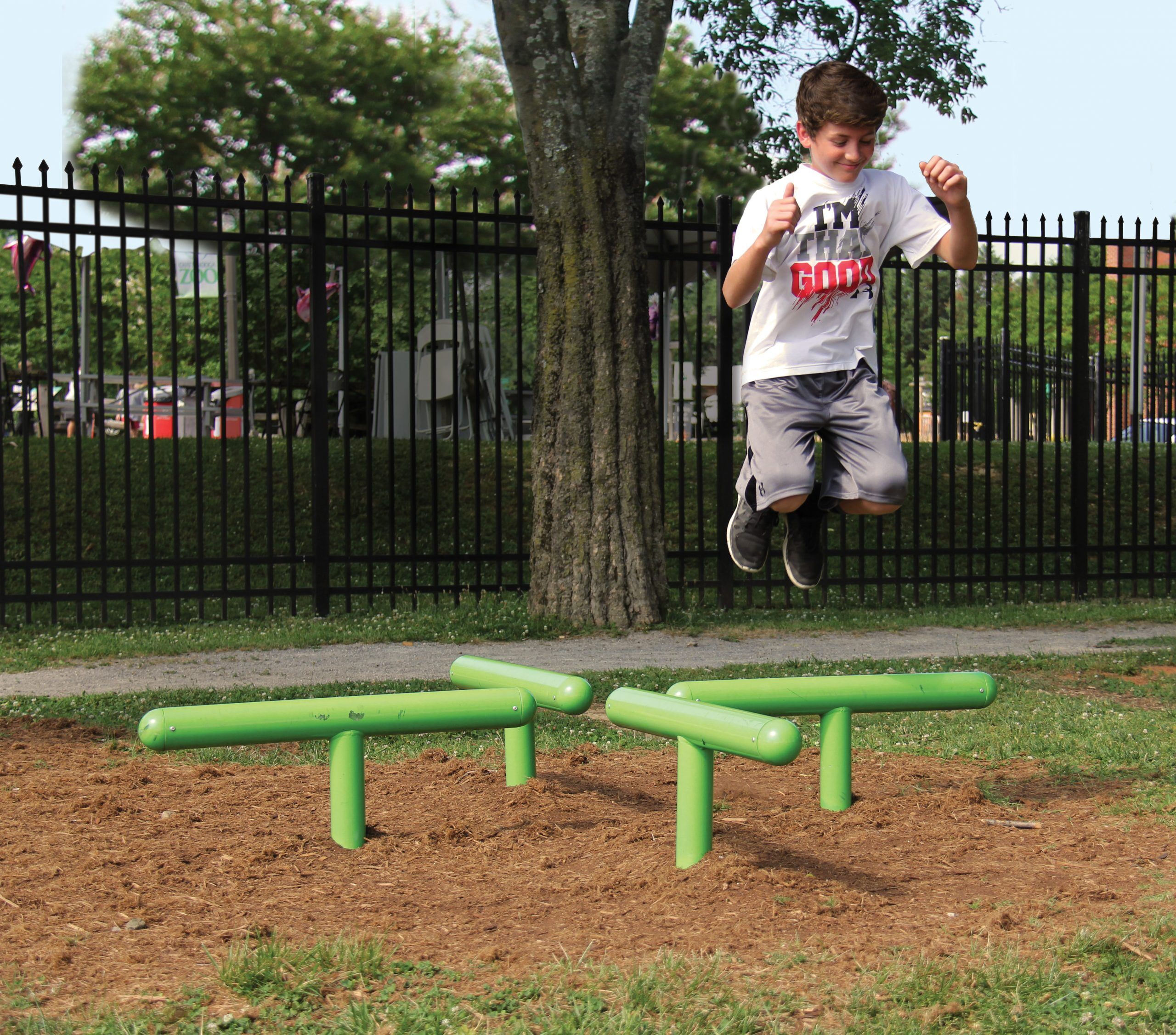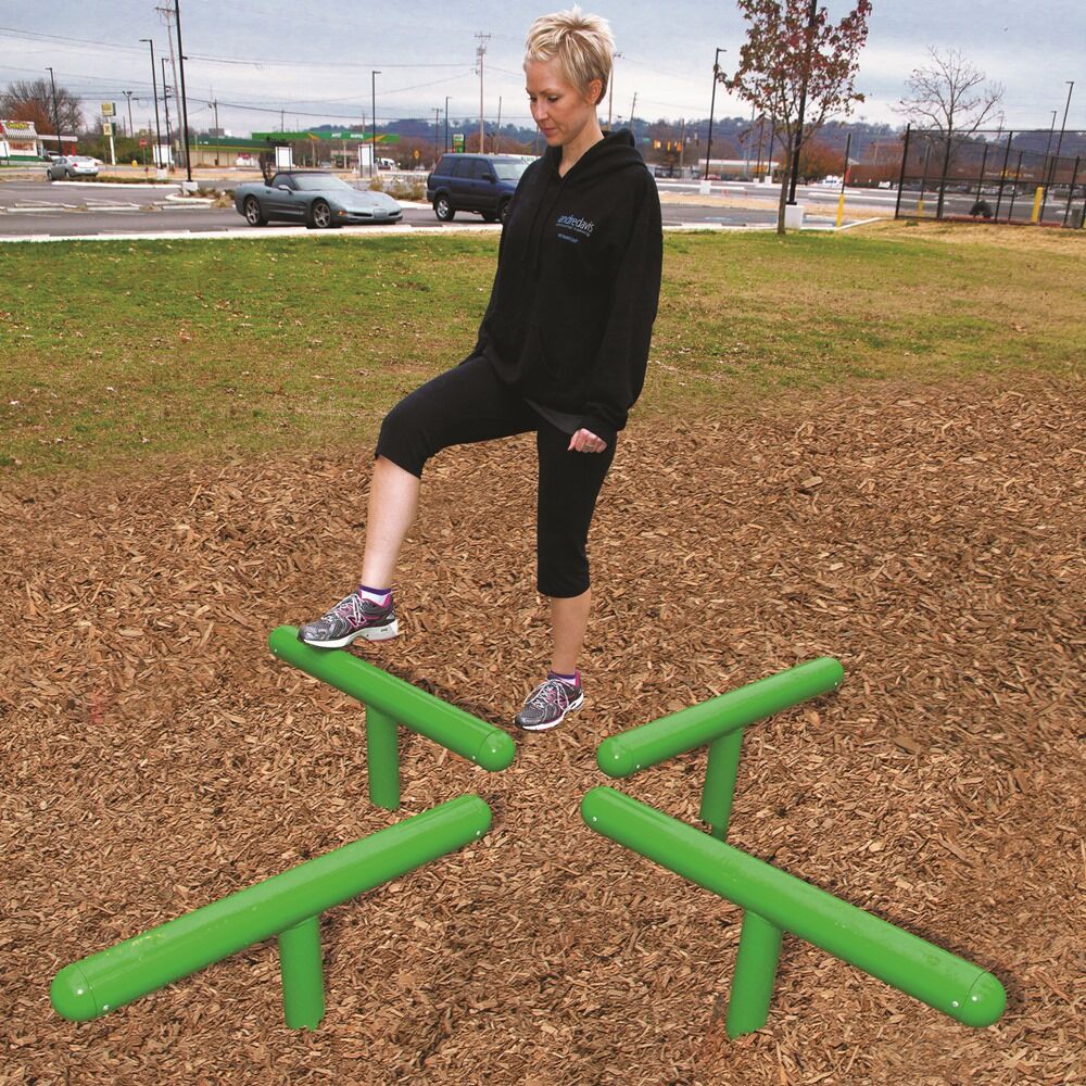 The Log Hop Station is an aerobic activity that engages ones core and lower body. It is easily tailored to the users ability as one can simply step over each log then gradually advancing to jumping and hopping with both feet. Designed for ages 13 and up.
