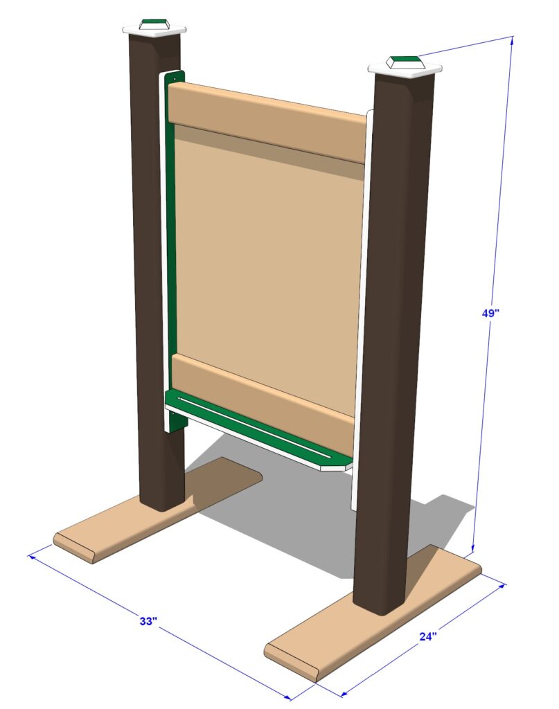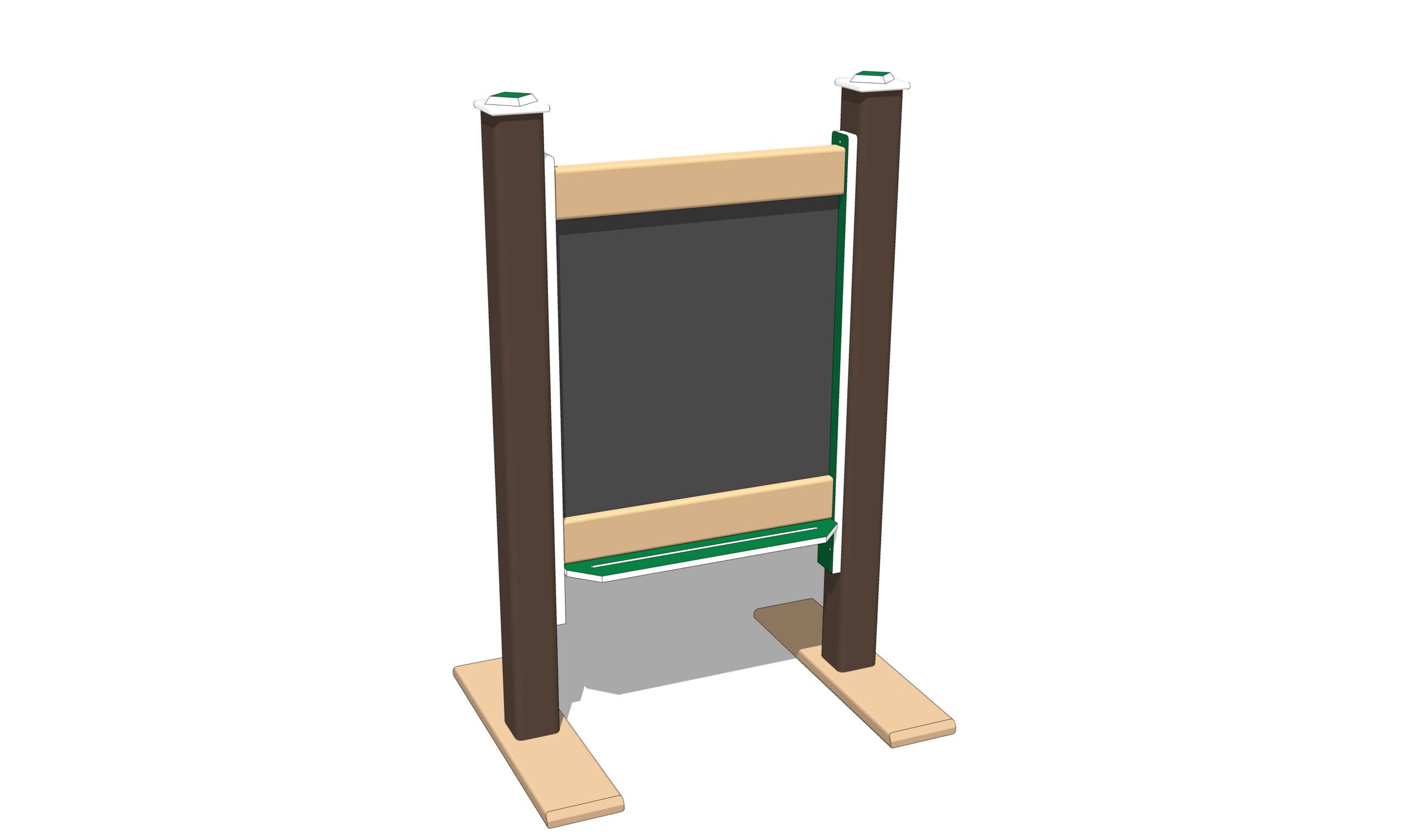 Both durable coatings resist vandals and clean very easily with just water. Trays on each side of the panel provide plenty of storage space for your little artist’s drawing tools.
