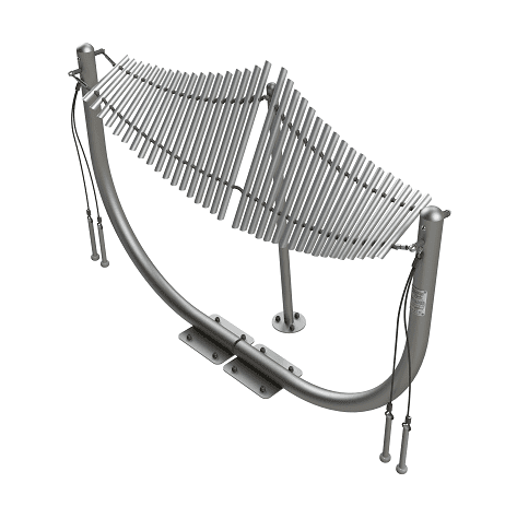 The Manta Ray has a magical sound. It has an elegant anodized aluminum metallophone with a Powder Coated steel frame. The individual chime tubes are suspended by a nylon coated stainless steel cable. The chimes on the two sides are repeated and it has four mallets, making it a great instrument for two people to play together. The range is two octaves and a fifth, the scale is C major. Playing this instrument is a delight.
