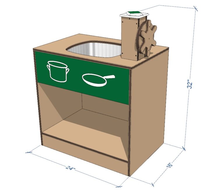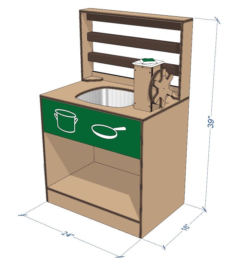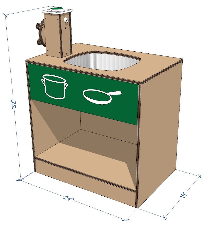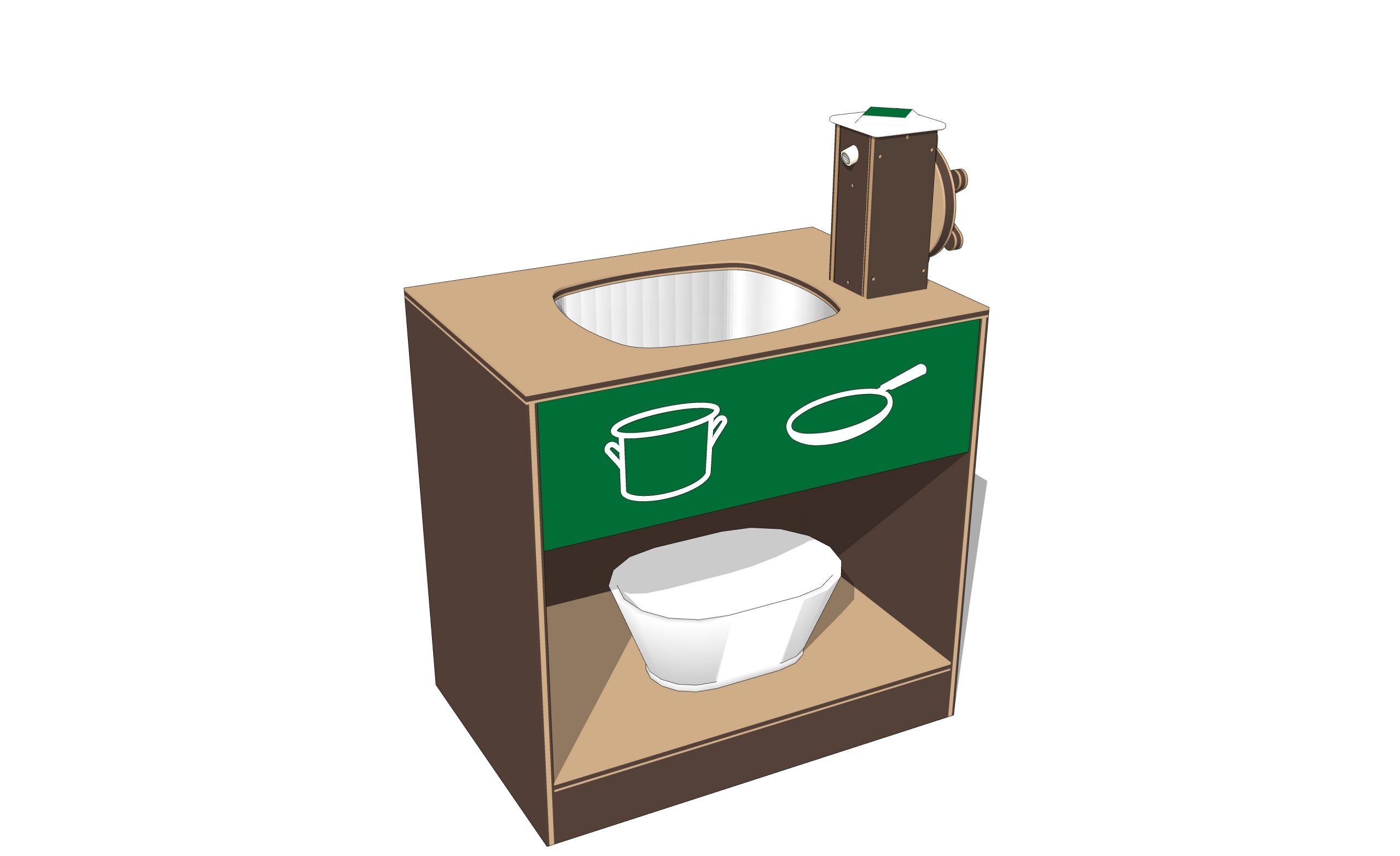 Made from durable Recycled Structural Plastic and EcoColor recycled plastic. Mud Kitchen Appliances, Cabinets and Sinks provide year-round, outdoor learning experiences and do not require plumbing. Stainless steel hardware ensures years of service.