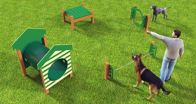 Our recycled Novice course includes four (4) exciting and fun components that can be used intuitively by most dogs. This equipment is the best bet for drawing new and returning visitors to the dog park!