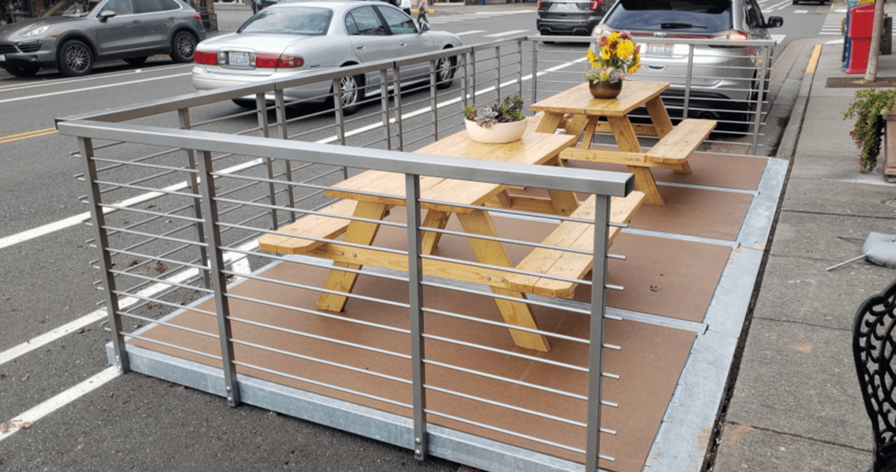 The Parklet is an innovative way to build public gathering spaces right in the heart of the urban streetscape. Businesses and organizations with limited sidewalk space now have the unique ability to extend their atmosphere and aesthetic to the outdoors. The Parklet’s modular design allows each space to be built to suit any vision. With a galvanized steel frame and rugged, all-weather decking, this little urban oasis has the durability to last through all seasons.