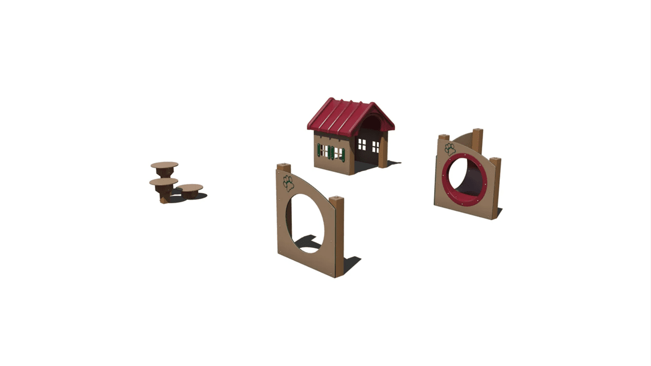 Pawsitively Playful is a small dog park course that packs a mighty punch! Designed for compact areas, this course will provide fun challenges to dogs of all skill levels.
