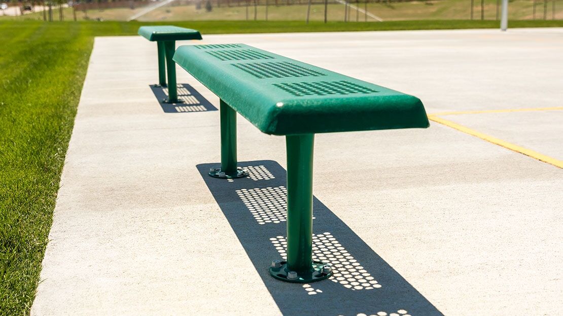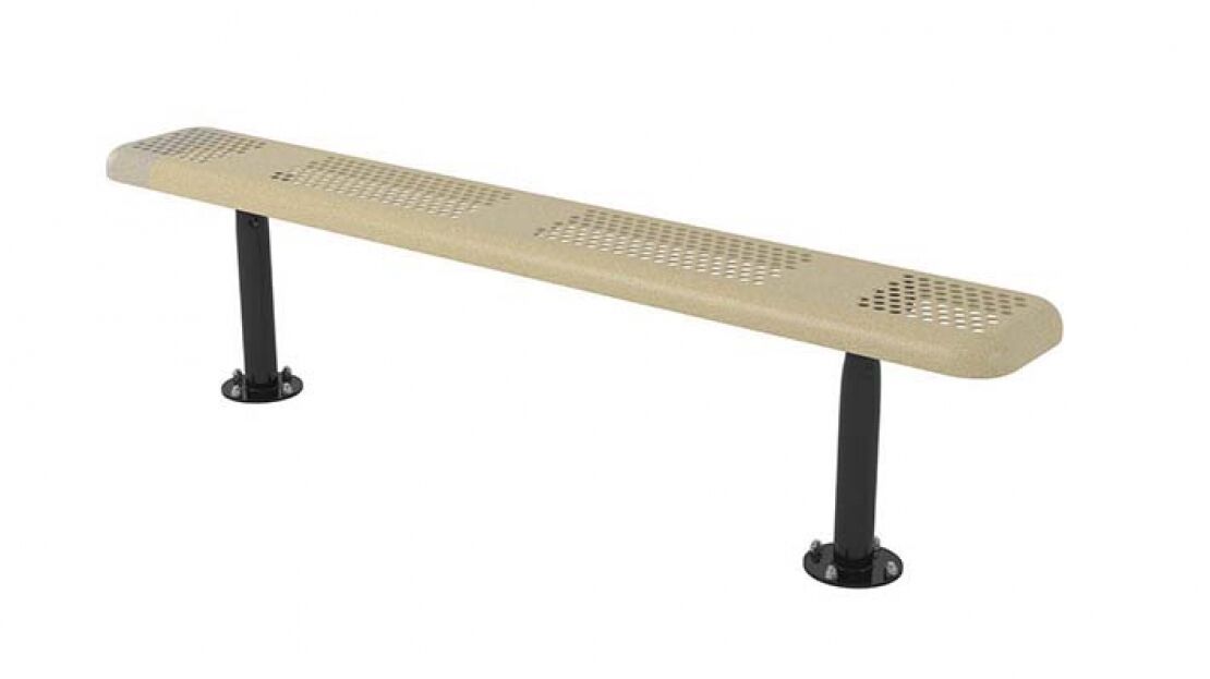 The Perforated Standard Bench without Back features one of our most popular metal styles with the durability of our 2 3/8″ powder-coated frame. Its backless design makes it great as an outdoor basketball court bench, a tennis court bench, or even a dugout bench. Select your preferred length, textured polyethylene color, and mounting option to best suit this park bench to your space.