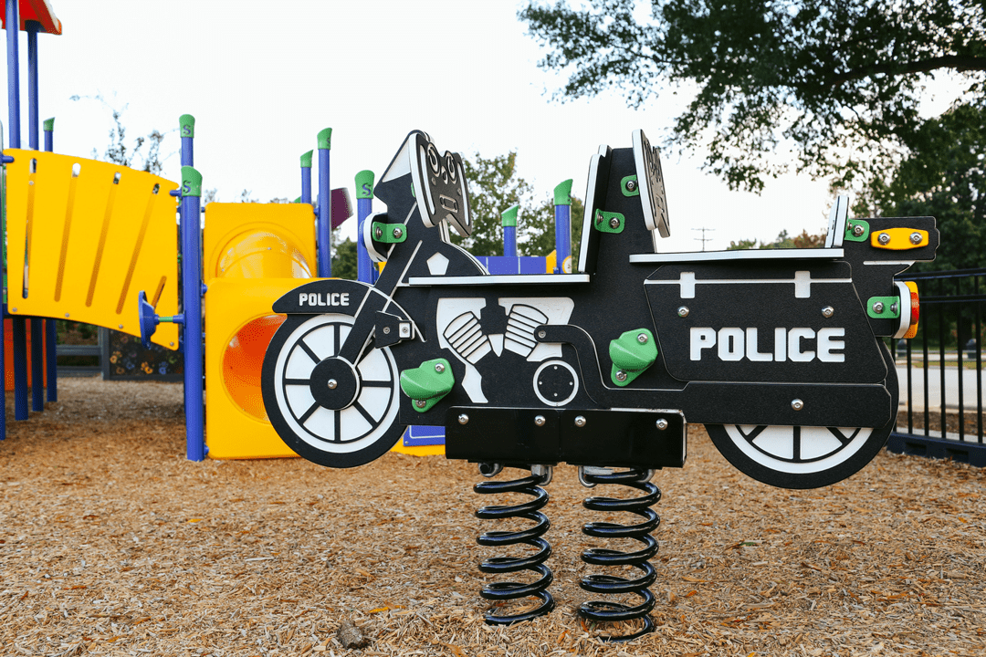 Spring toys are valuable additions to play when grouped in clusters to encourage social play. Children will love this Police Motorcycle rider!