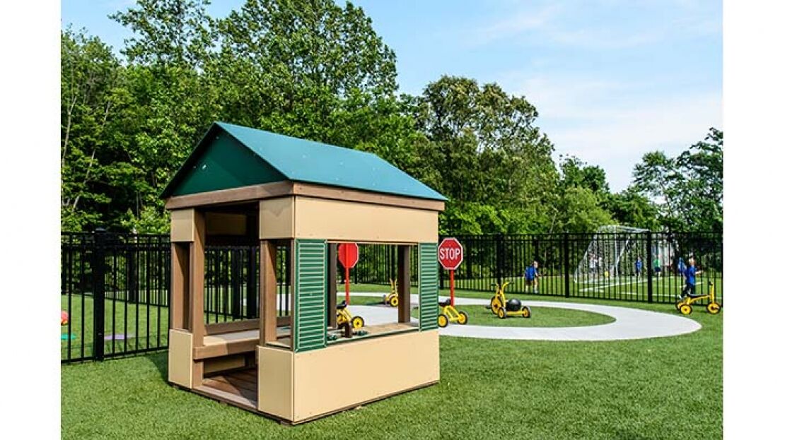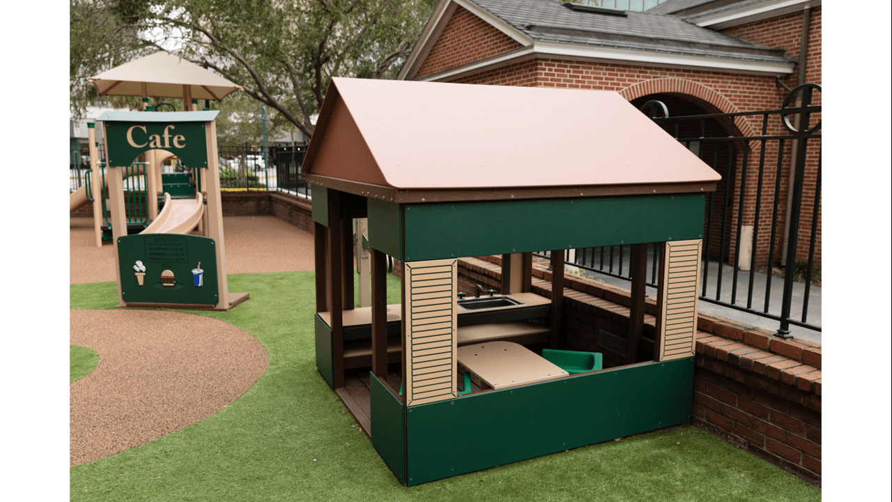 The Polytone Playhouse is a traditional play structure ideal for children ages 2-5. This structure promotes dramatic play promoting childhood development. For additional play components, add a stove and sink combination.