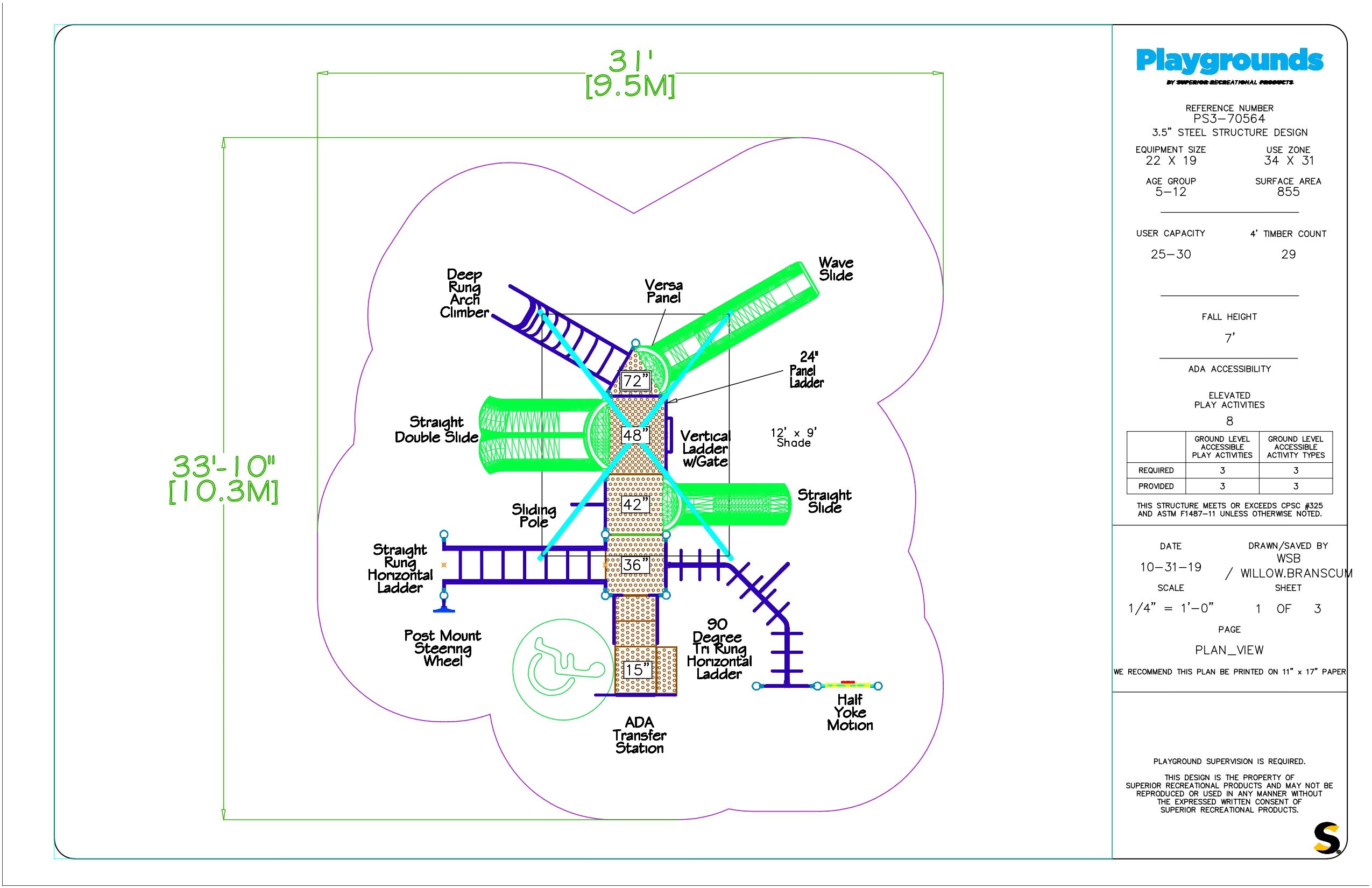 The PS3-70564 provides children with multiple options of physical play and childhood development while providing shade to protect against harmful UV rays. The structure is equipped with a 90-degree tri rung horizontal ladder along with a straight rung horizontal ladder giving children two climbing routes. In addition, the structure has a deep rung arch climber that allows climbing access to the wave slide. This structure is the perfect addition to your elementary school or local recreational park. Explore the different color options to create the perfect play space.