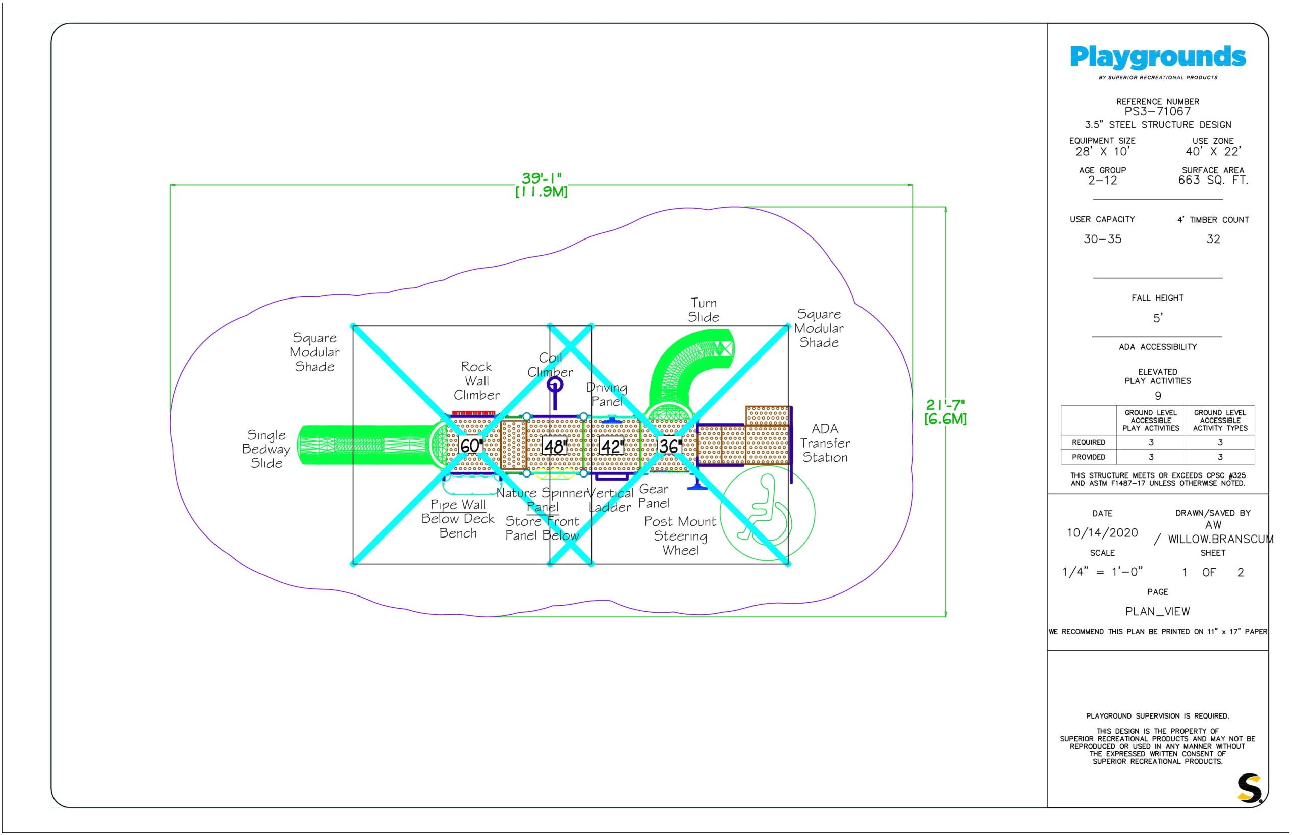 The PS3-71067 features multiple slides, climbers, and panels allowing children ages 2-12 plenty of opportunities to climb, learn, and explore this play structure. Being designed for children ages 2-12, this commercial playground is suitable for community play areas or playgrounds located at school properties. Great shade too!