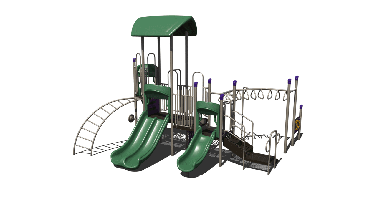 If you’re looking for a mid-sized playground for your school, neighborhood, or park, our PS3-71298 might just be the winner. This playground has a variety of playground components, including slides, monkey bars, playground climbers, and activity panels. Designed for children ages 5-12, this playground can accommodate between 20-25 children.