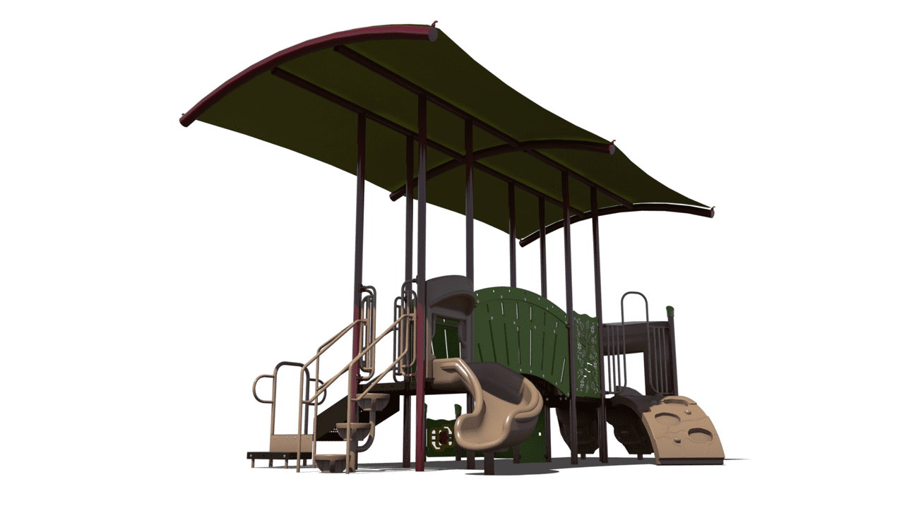 One of the best ways to shade a playground is with integrated shade. We’ve created 6 new structures that feature our barrel vaulted shade, which provides the most sun protection possible from an integrated shade. These shade designs are available in two different options — single deck or deck-to-deck. The deck-to-deck option is our first-ever integrated shade that utilizes two square decks and covers up to 24 feet.