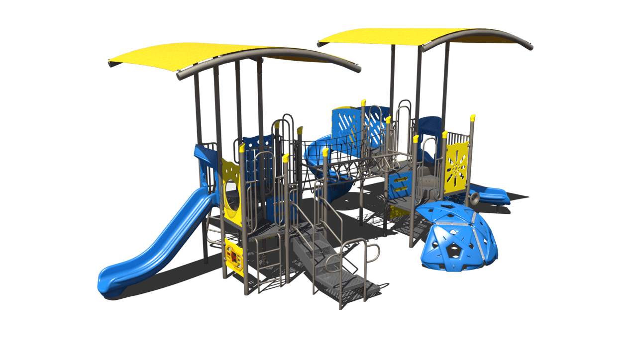 One of the best ways to shade a playground is with integrated shade. We’ve created 6 new structures that feature our barrel vaulted shade, which provides the most sun protection possible from an integrated shade. These shade designs are available in two different options — single deck or deck-to-deck. The deck-to-deck option is our first-ever integrated shade that utilizes two square decks and covers up to 24 feet.