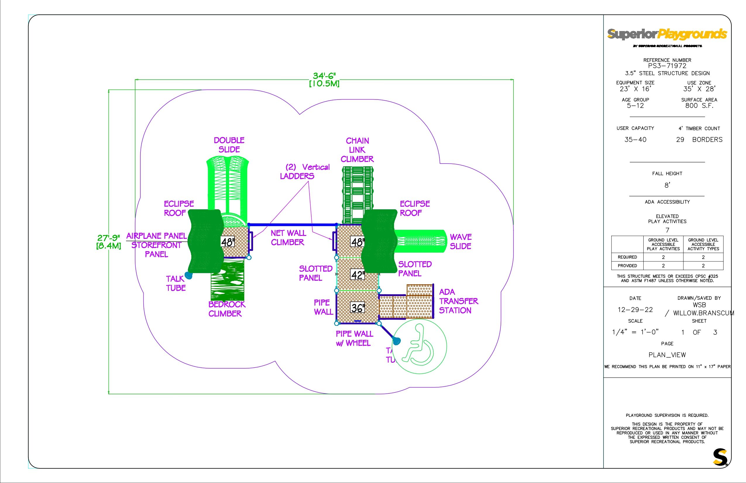 The PS3-71972 adds great play value to any playground. Children ages 5-12 will enjoy exploring the fun climbers, panels, and slides on this steel playground. Choose your preferred color scheme to best fit your space.