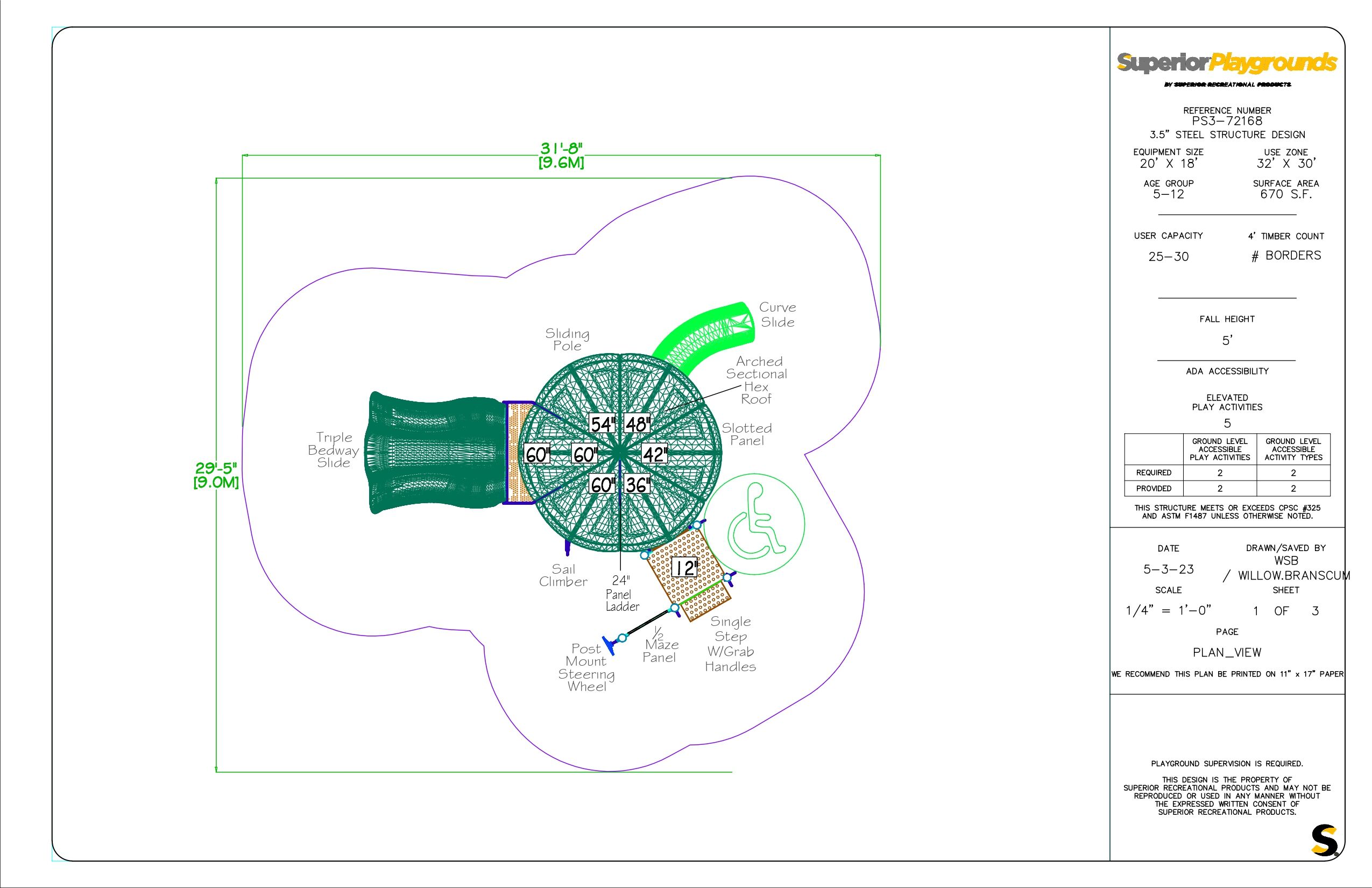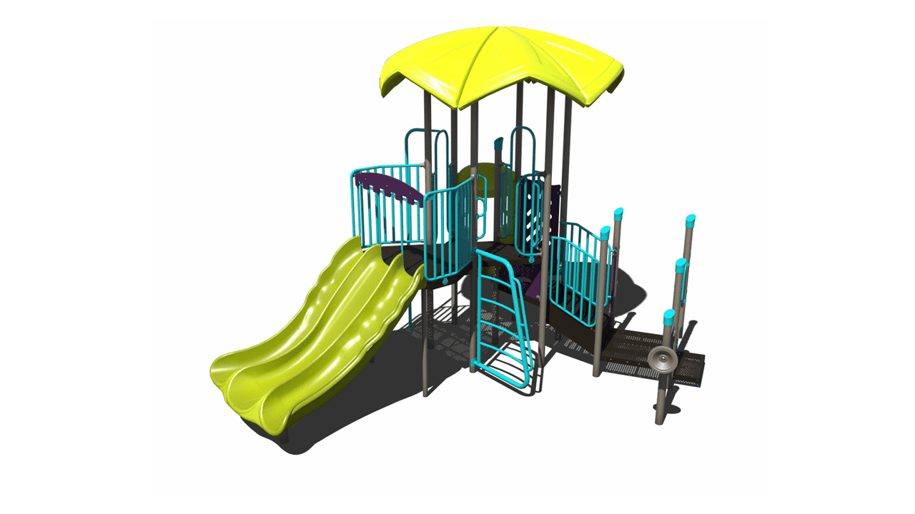 The PS3-72168 is an outdoor play structure designed for commercial use. This durable playground is designed for children ages 5-12. It features fun slides, climbers, and interactive play panels. Compact fun for small spaces!