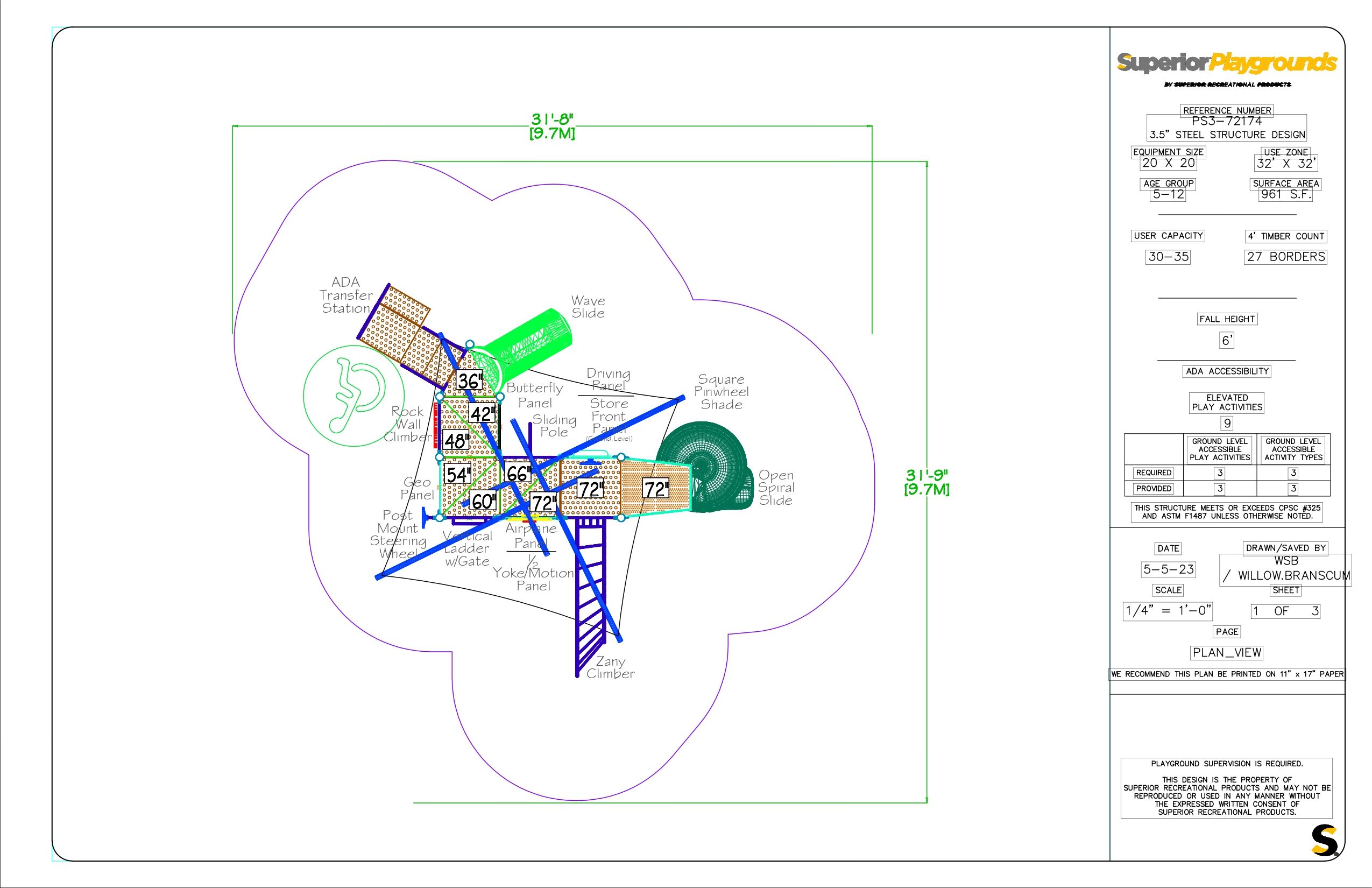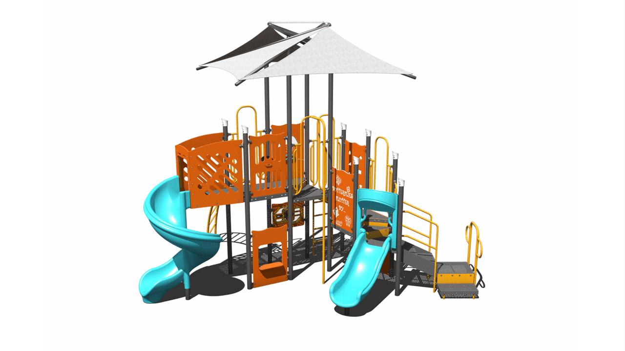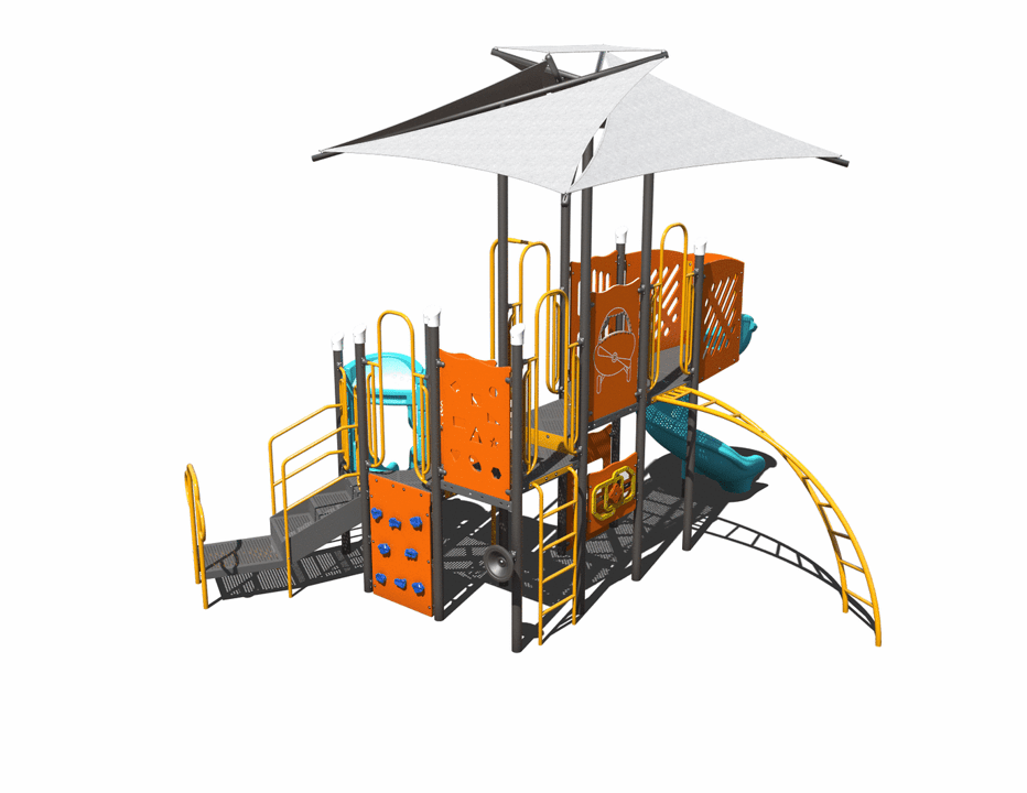 The PS3-72174 is a commercial-grade playground. It’s designed with age-appropriate slides, panels, and climbers for children ages 5-12 years old. Choose your colors to best fit the structure to your play environment.