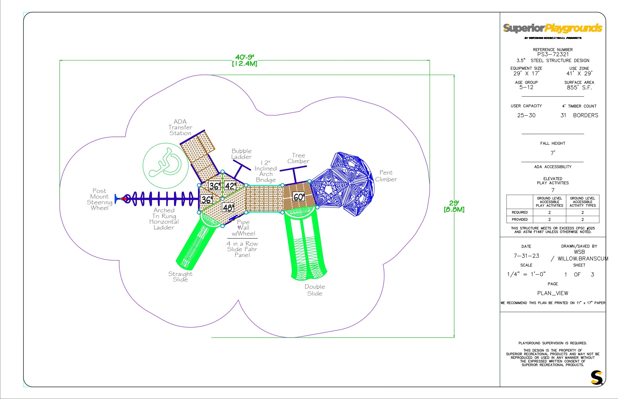 The PS3-72321 is an outdoor play structure designed for commercial use. This durable playground is designed for children ages 5-12. It features fun slides, climbers, and interactive play panels. Compact fun for small spaces!