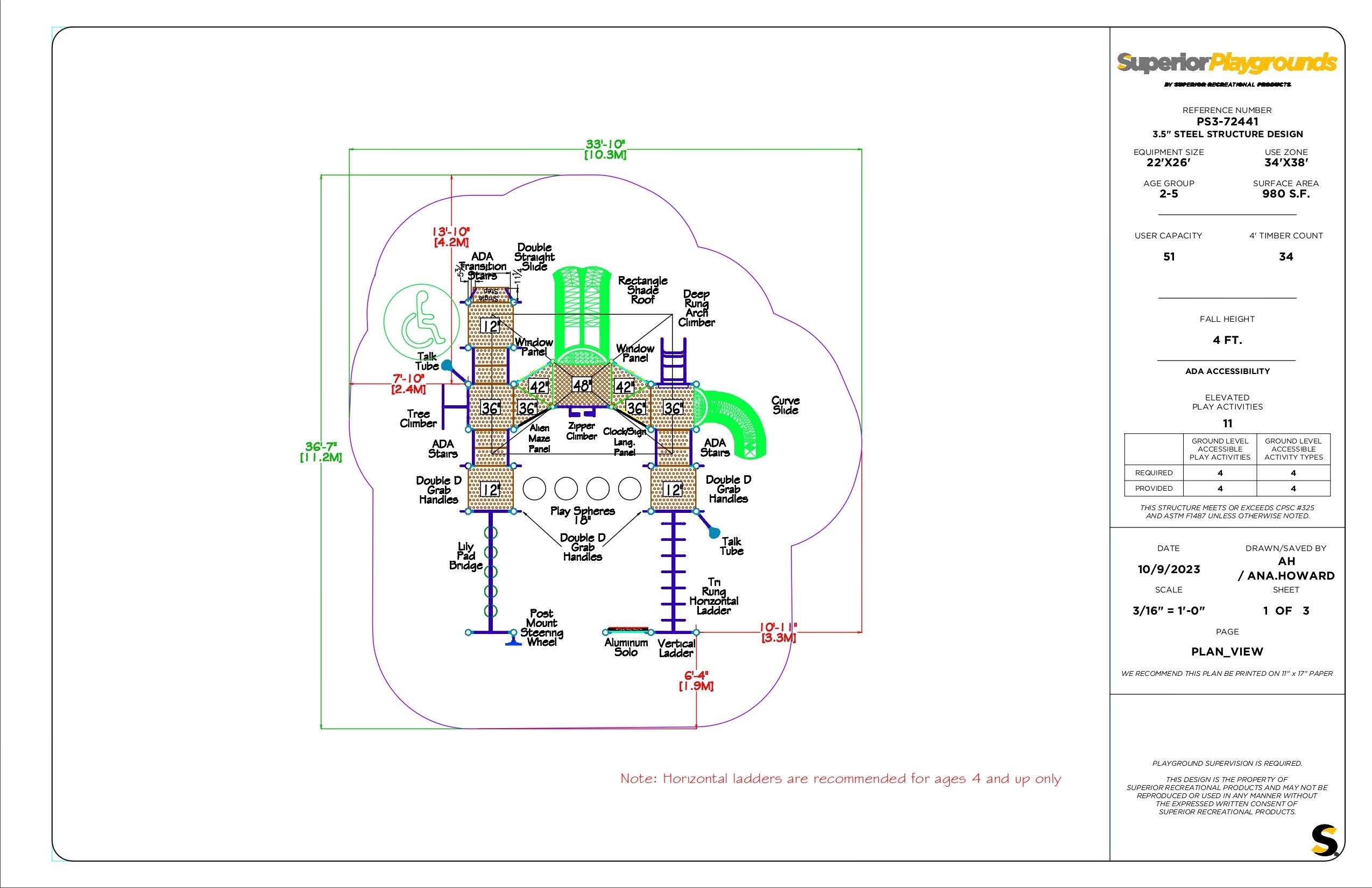 - Fall Height: 4′