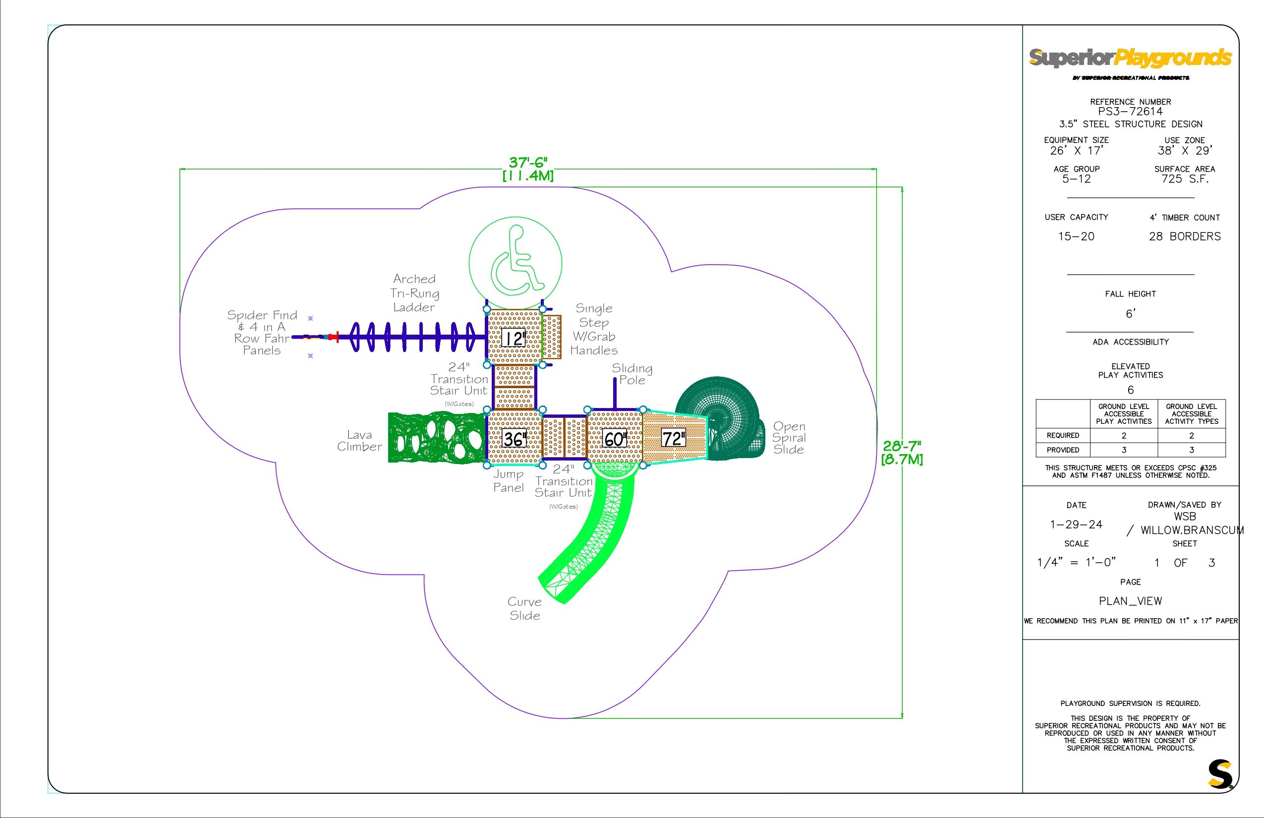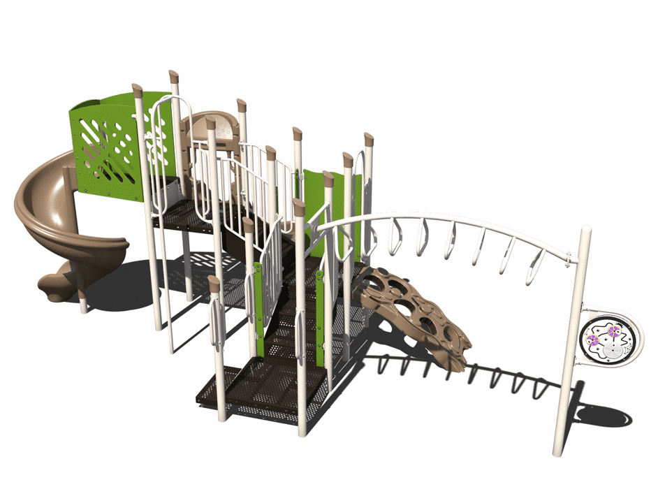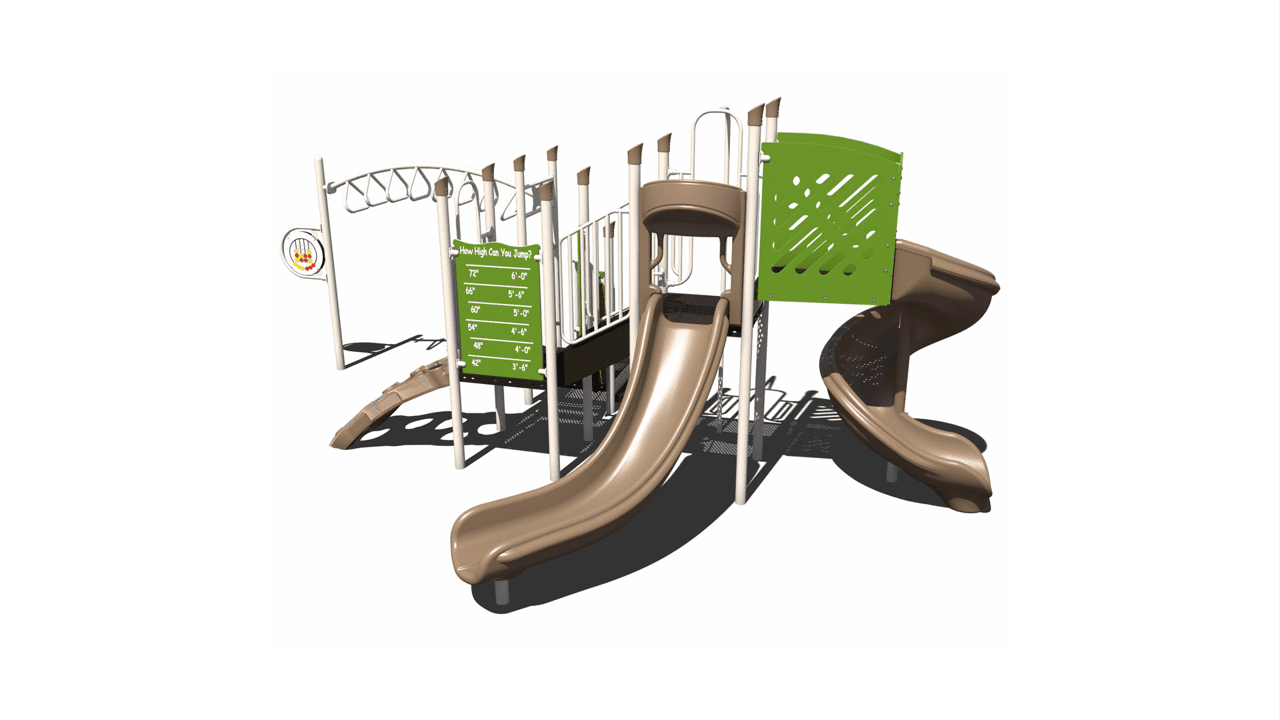 The PS3-72614 is an outdoor play structure designed for commercial use. This durable playground is designed for children ages 5-12. It features fun slides, climbers, and interactive play panels. Compact fun for small spaces!