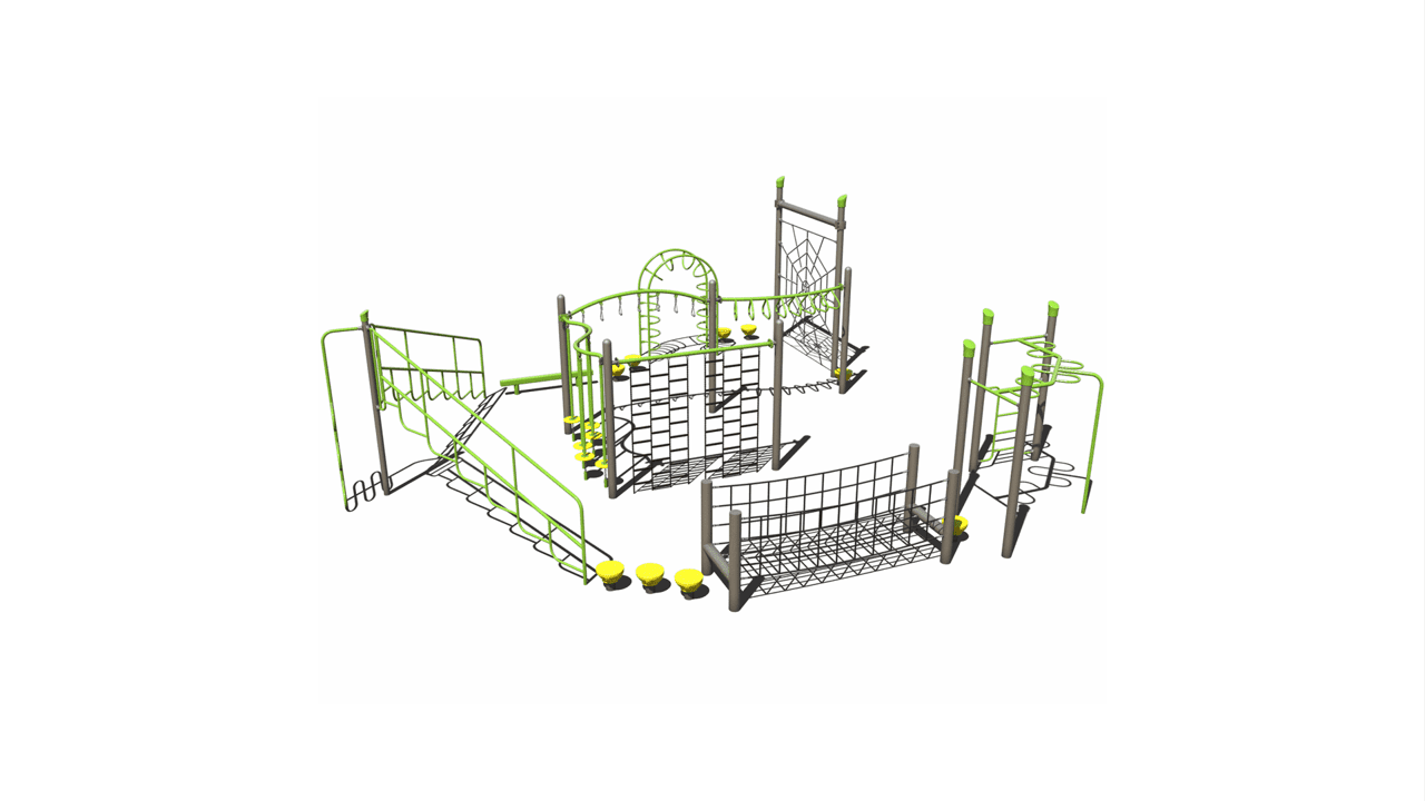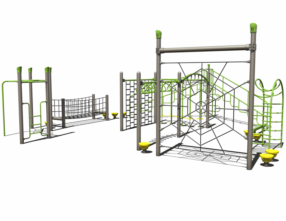 The PS5-71363 is designed to keep children ages 5-12 active. This challenge course features climbers and overhead events that help kids develop full body strength, balance, and confidence.