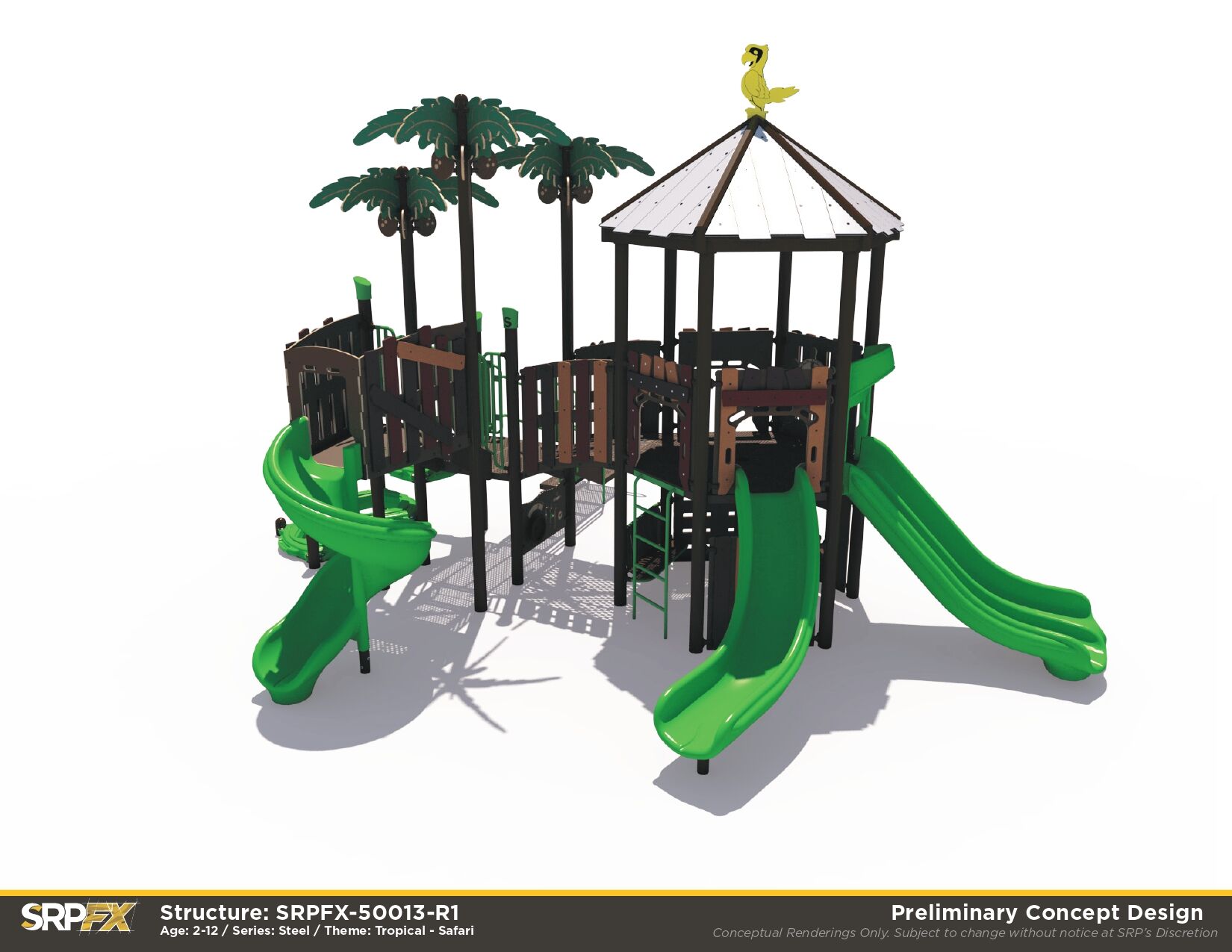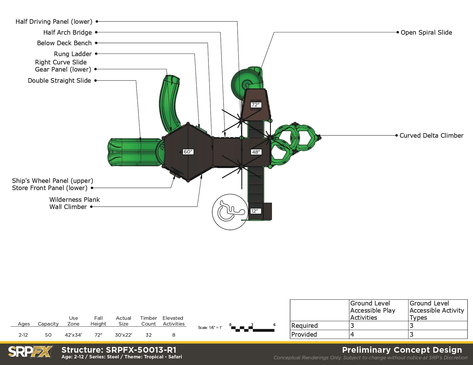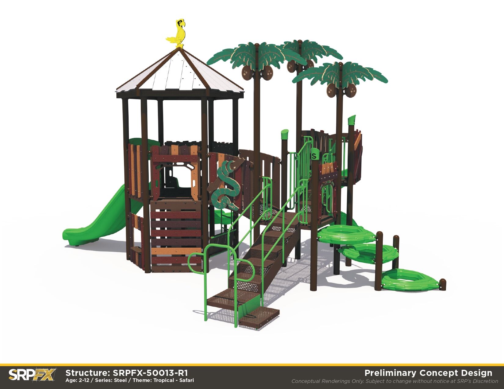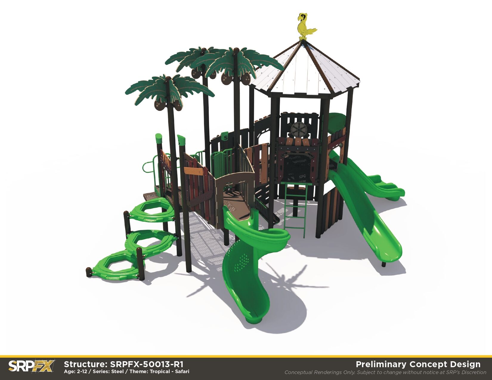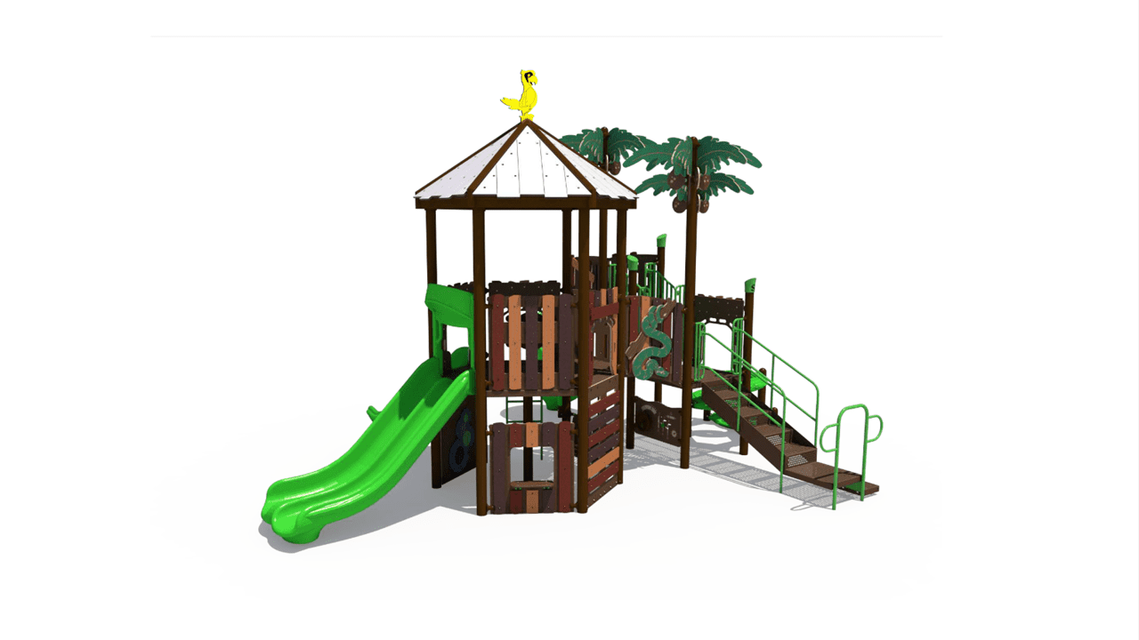 Enjoy an adventure every trip to this playground! Compact and full of themed elements and ground level play.