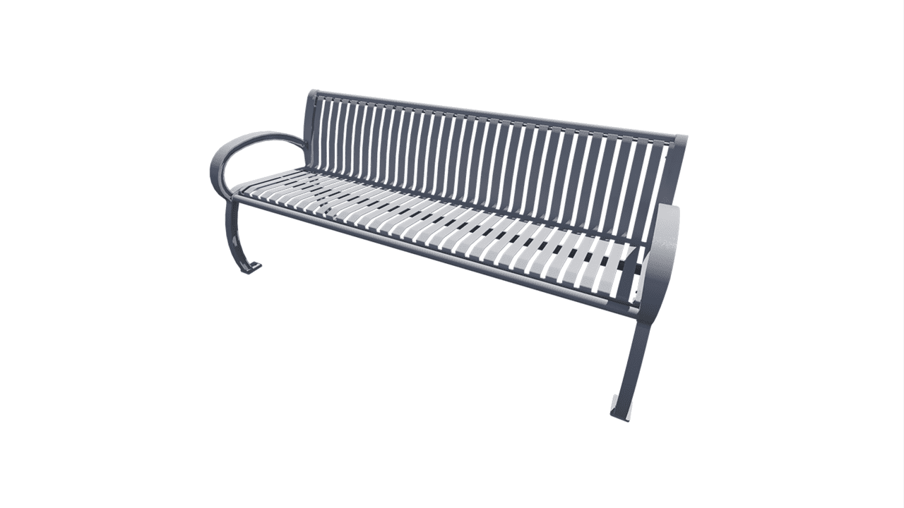 The Rainier Bench with Back features high arching armrests that add both function and style to any outdoor space. It is crafted of powder coated steel with a cast aluminum frame. Choose from 6-foot or 8-foot lengths and your choice of powder coat color. Specifications 6′ or 8′ length Vertical slats Combined portable/surface mount frame with pre-drilled surface mount holes Powder coated steel with cast aluminum frame Fully welded