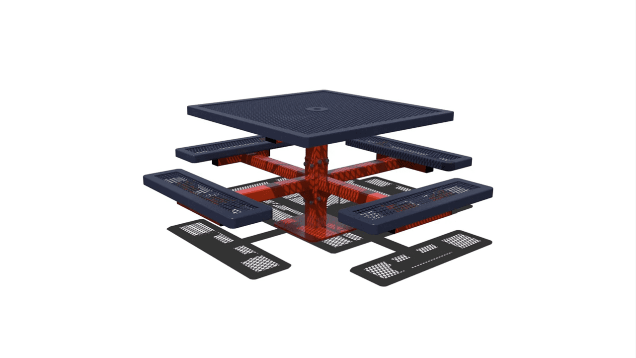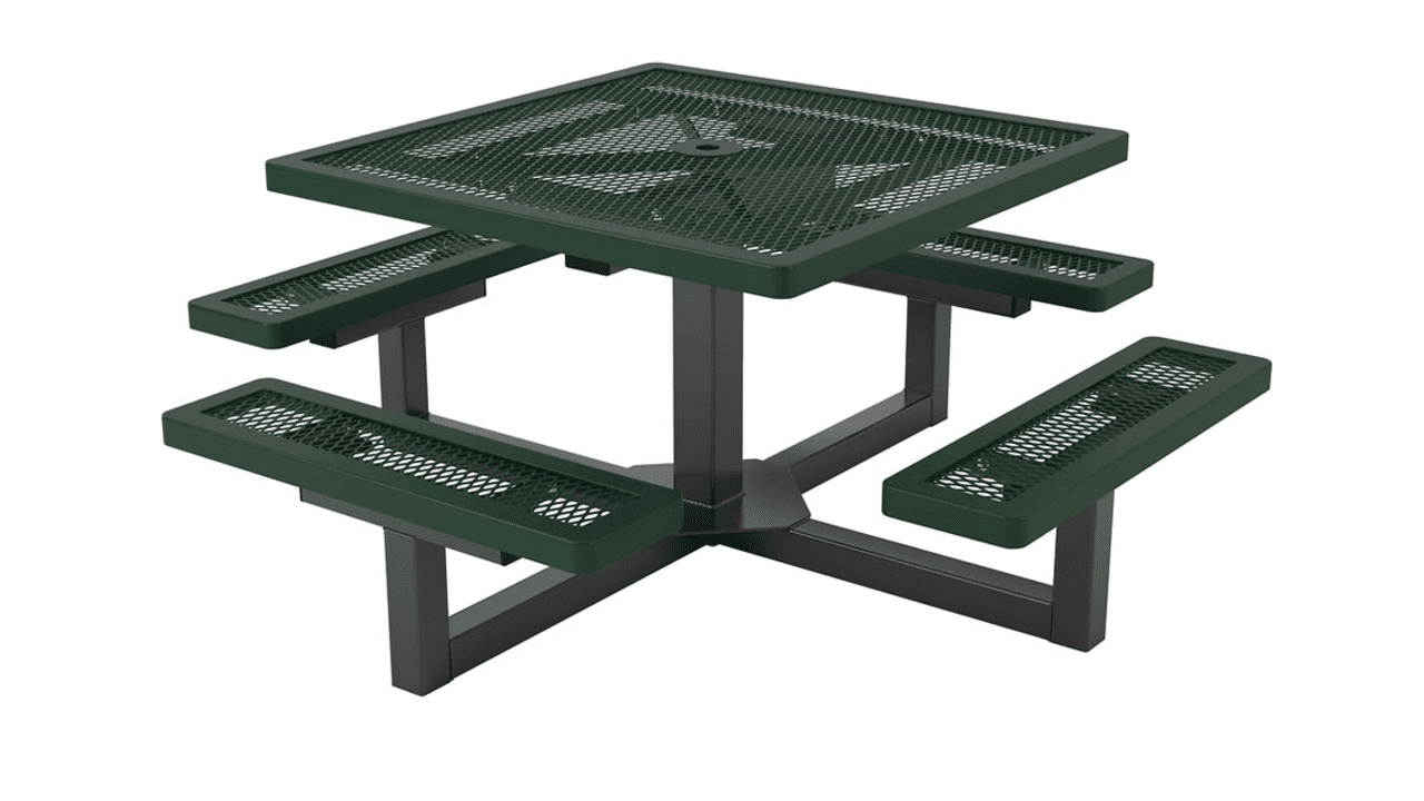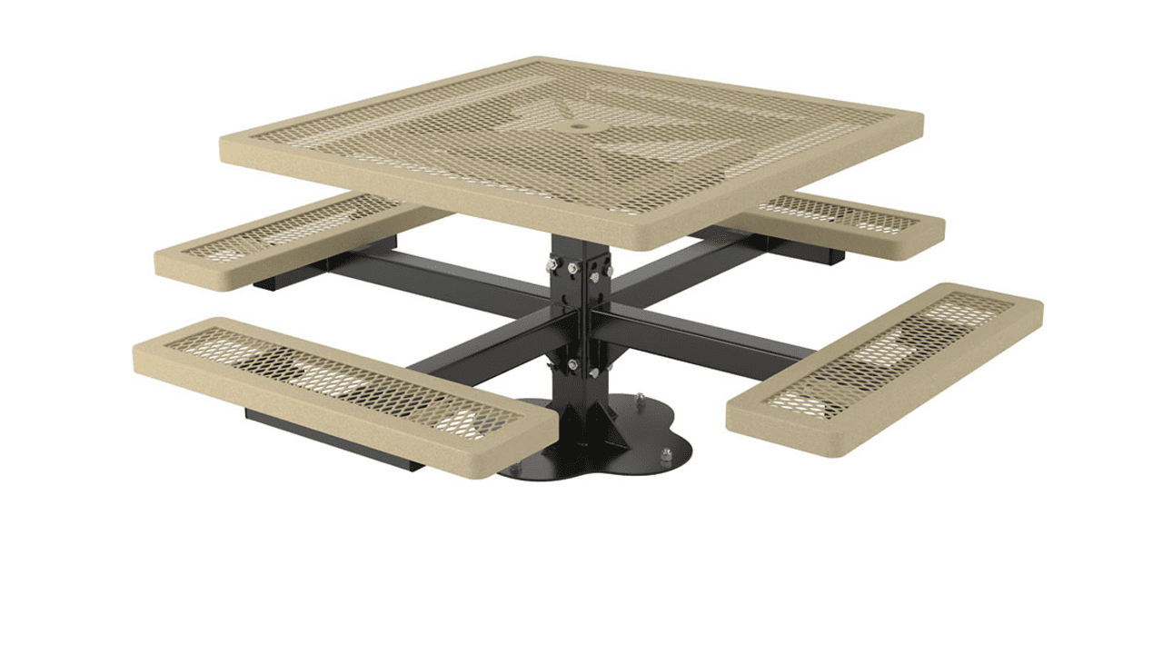 Looking for an outdoor picnic table? The Regal Square Pedestal Table makes a great addition to any outdoor space. It’s constructed with heavy-duty 4″ square powder coated frame. The 46-inch square table top can accommodate umbrellas with its standard umbrella hole. The table top and seats are coated in textured polyethlene. Choose from portable, surface, or in-ground mounting options.
