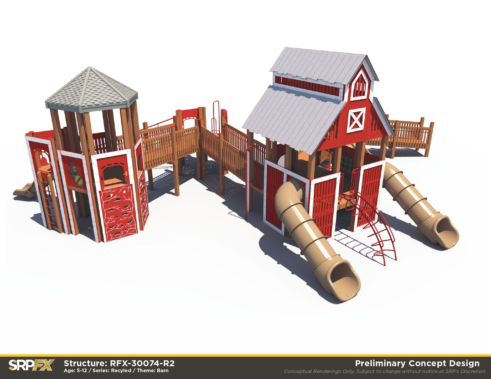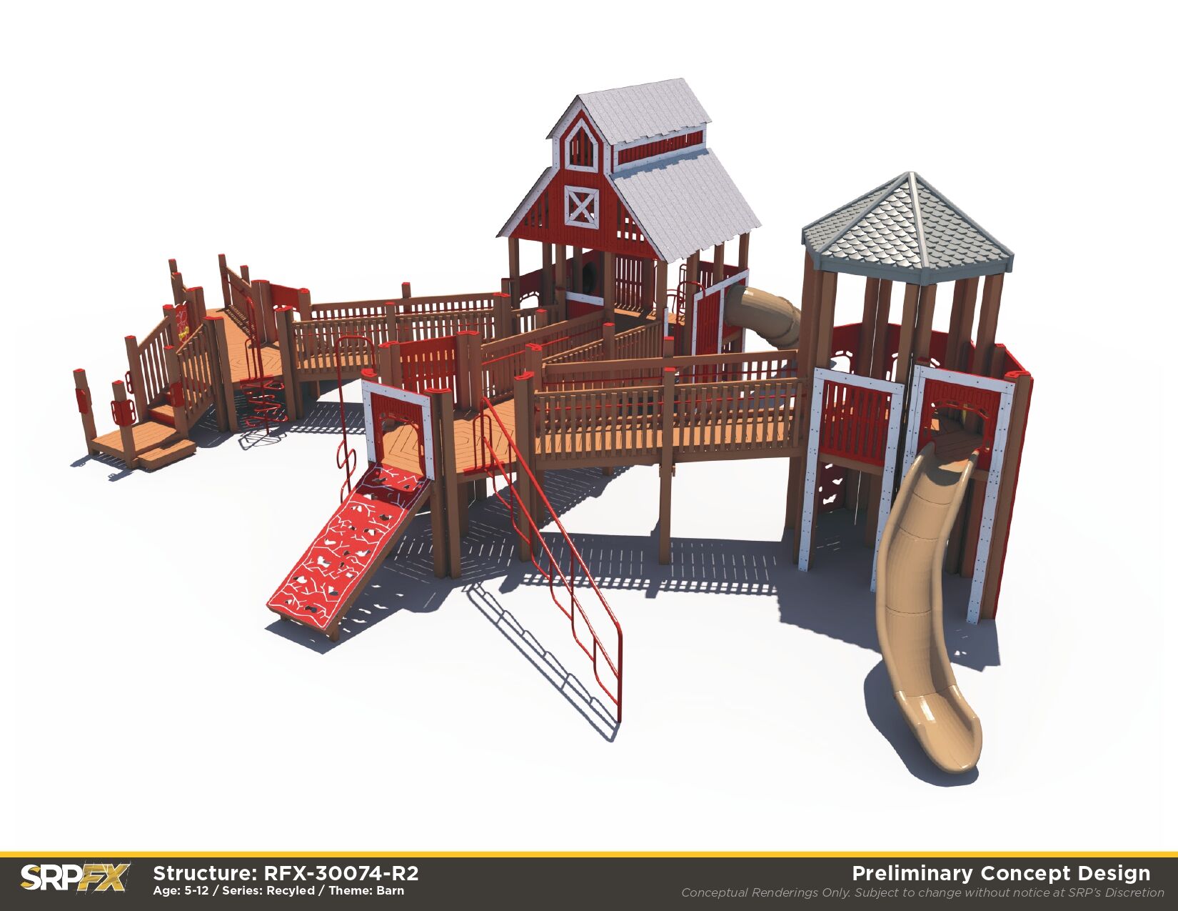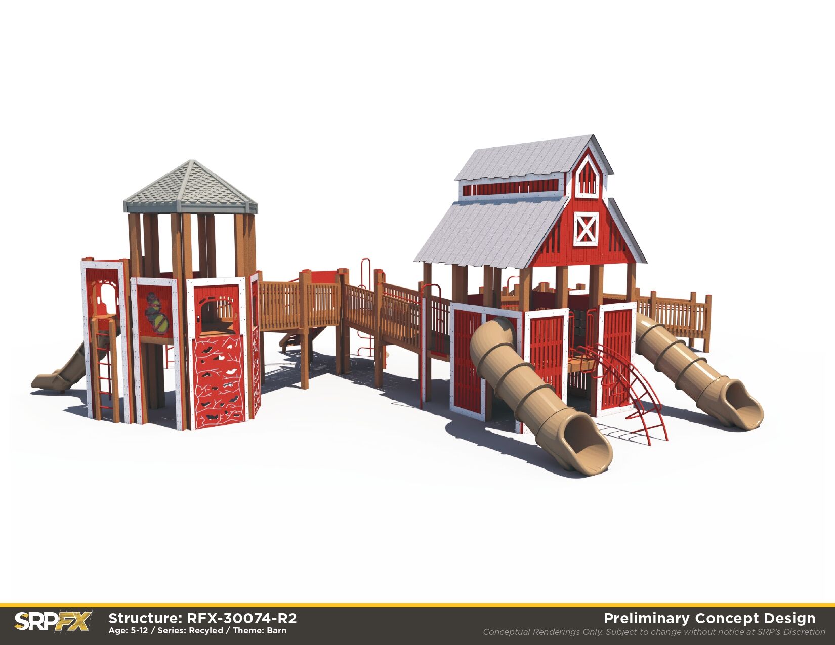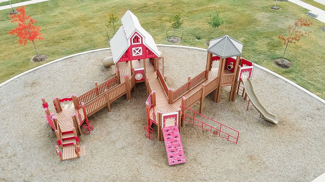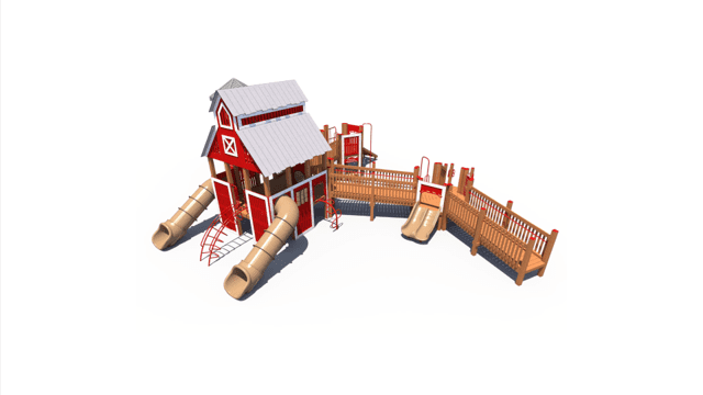Perfect for schools and park playgrounds, our Large Barn Themed Recycled Playground allows children of all abilities the opportunity to play together. It features many slides, climbers, and play panels for endless fun!