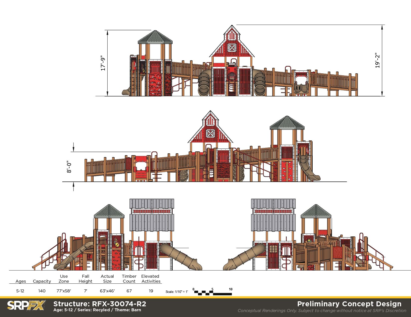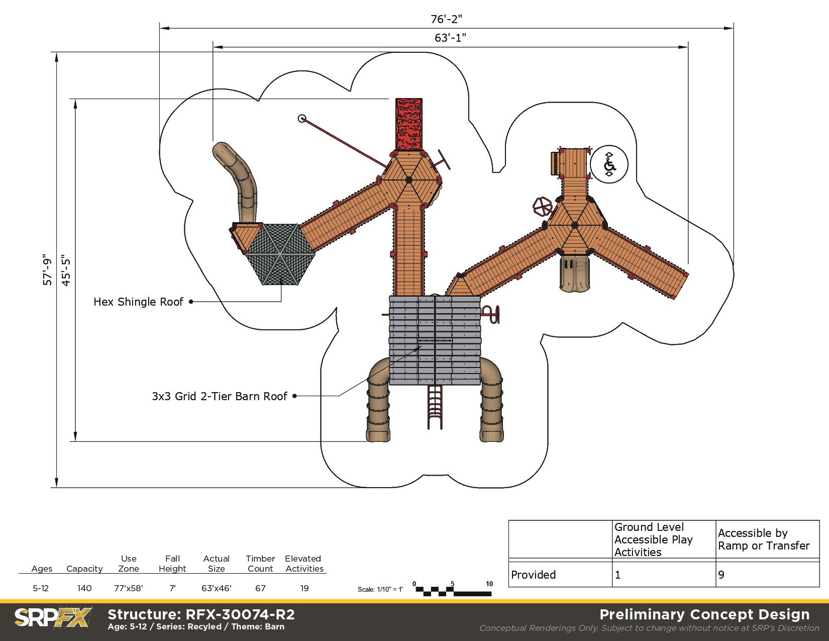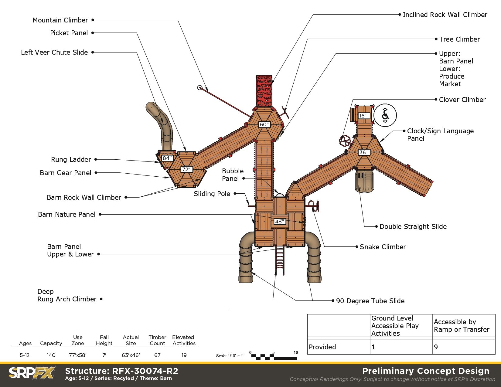 Perfect for schools and park playgrounds, our Large Barn Themed Recycled Playground allows children of all abilities the opportunity to play together. It features many slides, climbers, and play panels for endless fun!